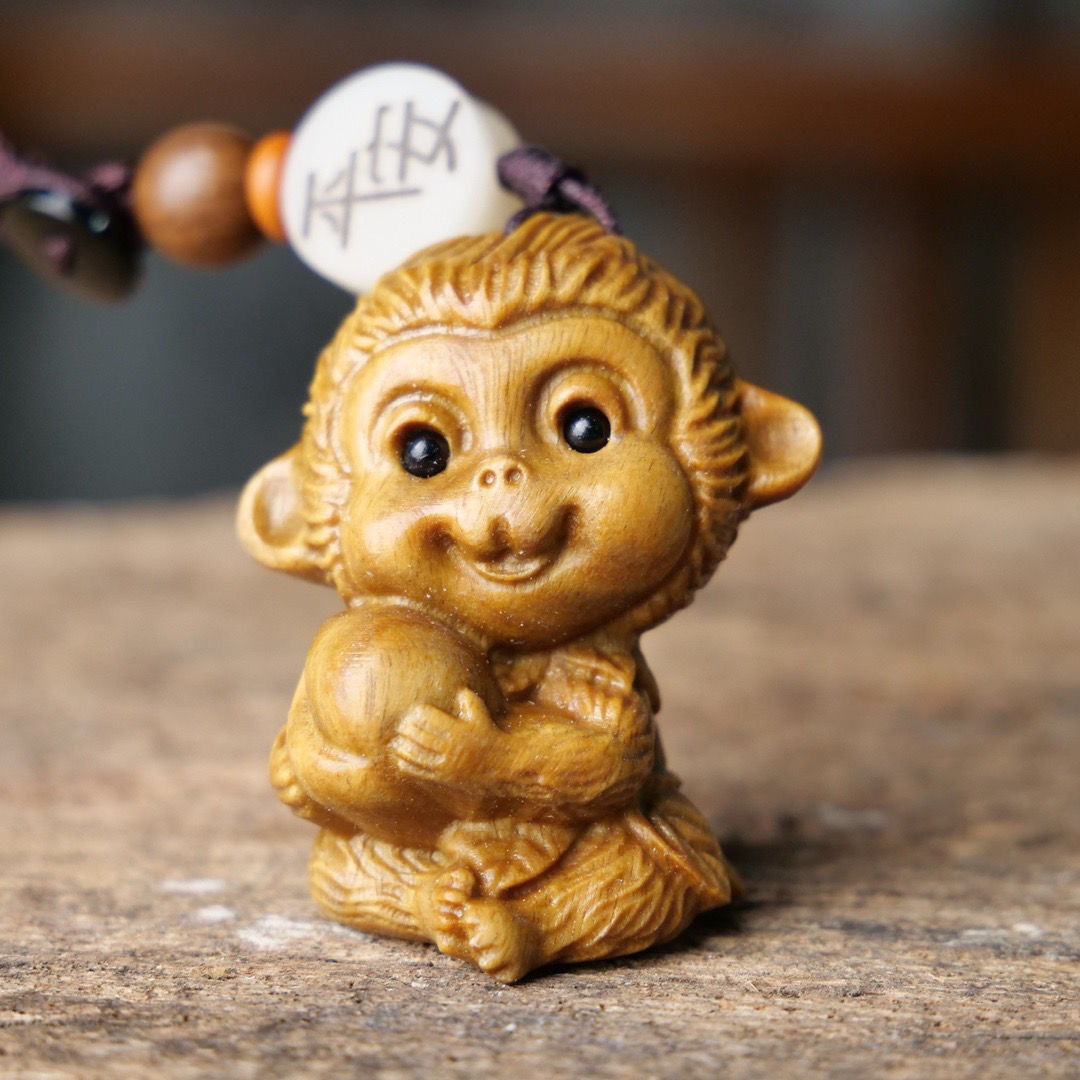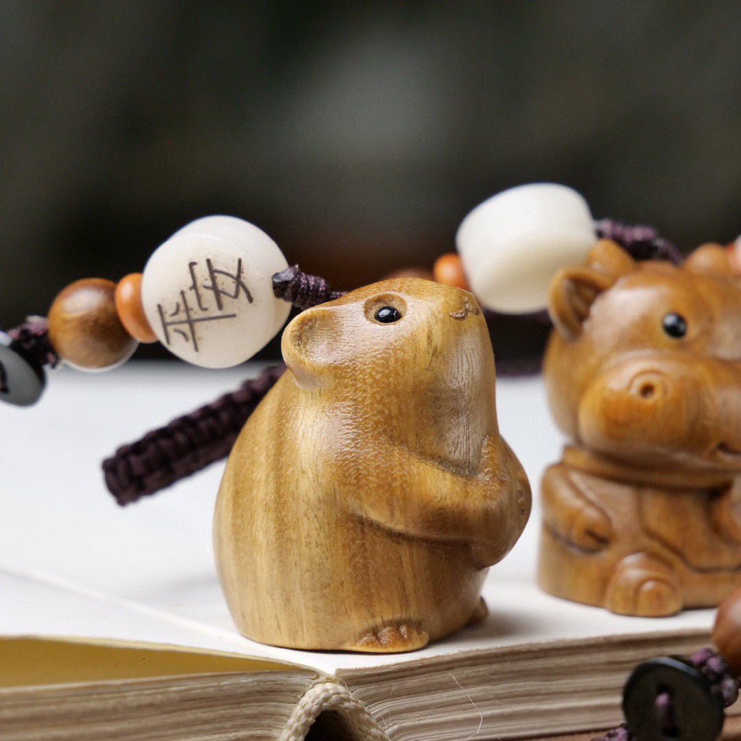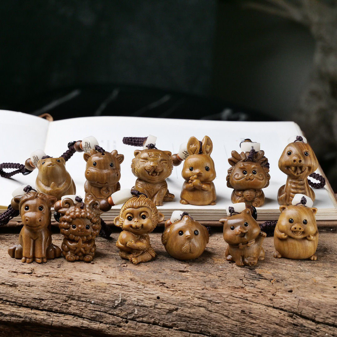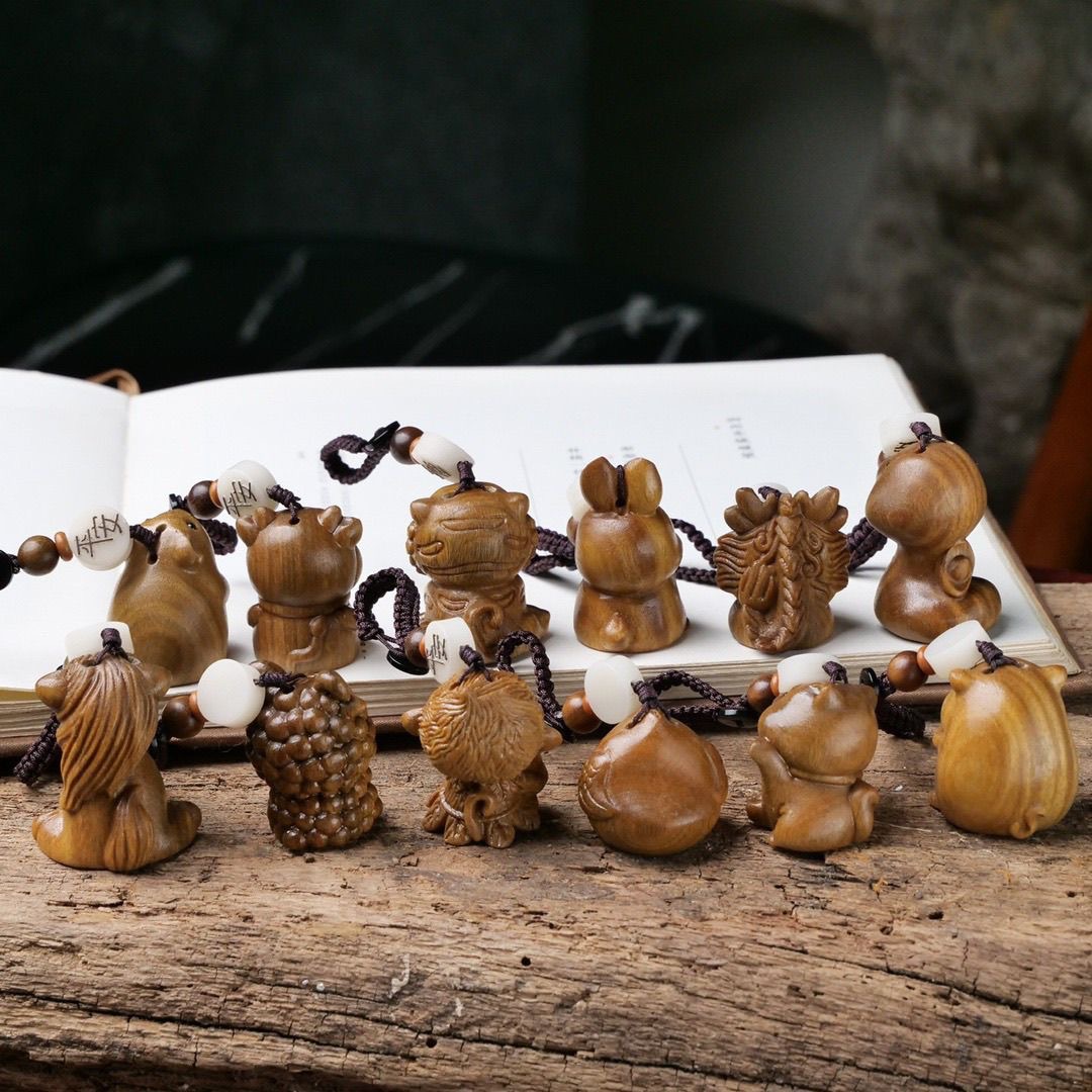 工厂直销绿檀木十二生肖钥匙扣手机链木质文玩可爱创意生肖挂件
