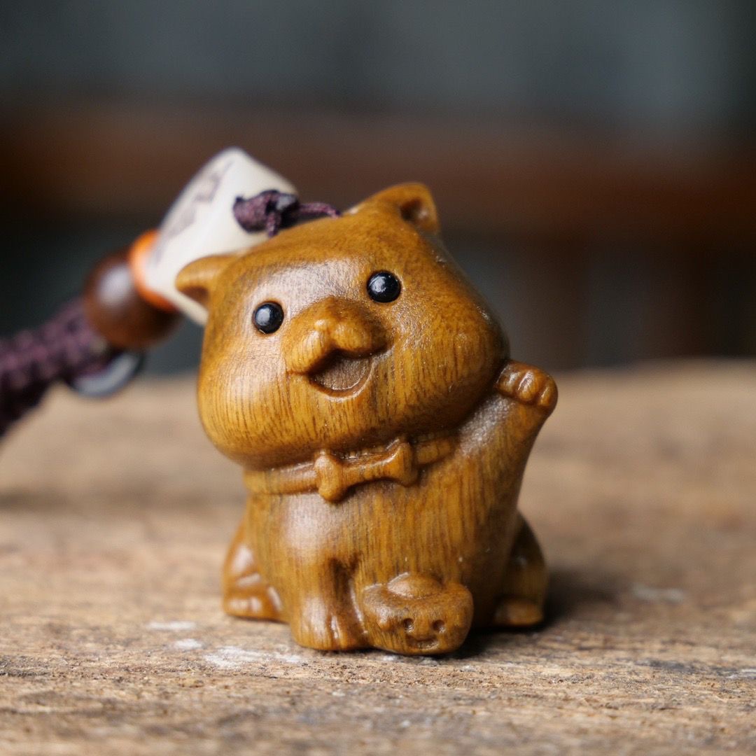 工場直販ブナ子猫ペンダントクリエイティブ彫刻ポータブルジュエリー無垢材子猫かわいいバッグペンダント
