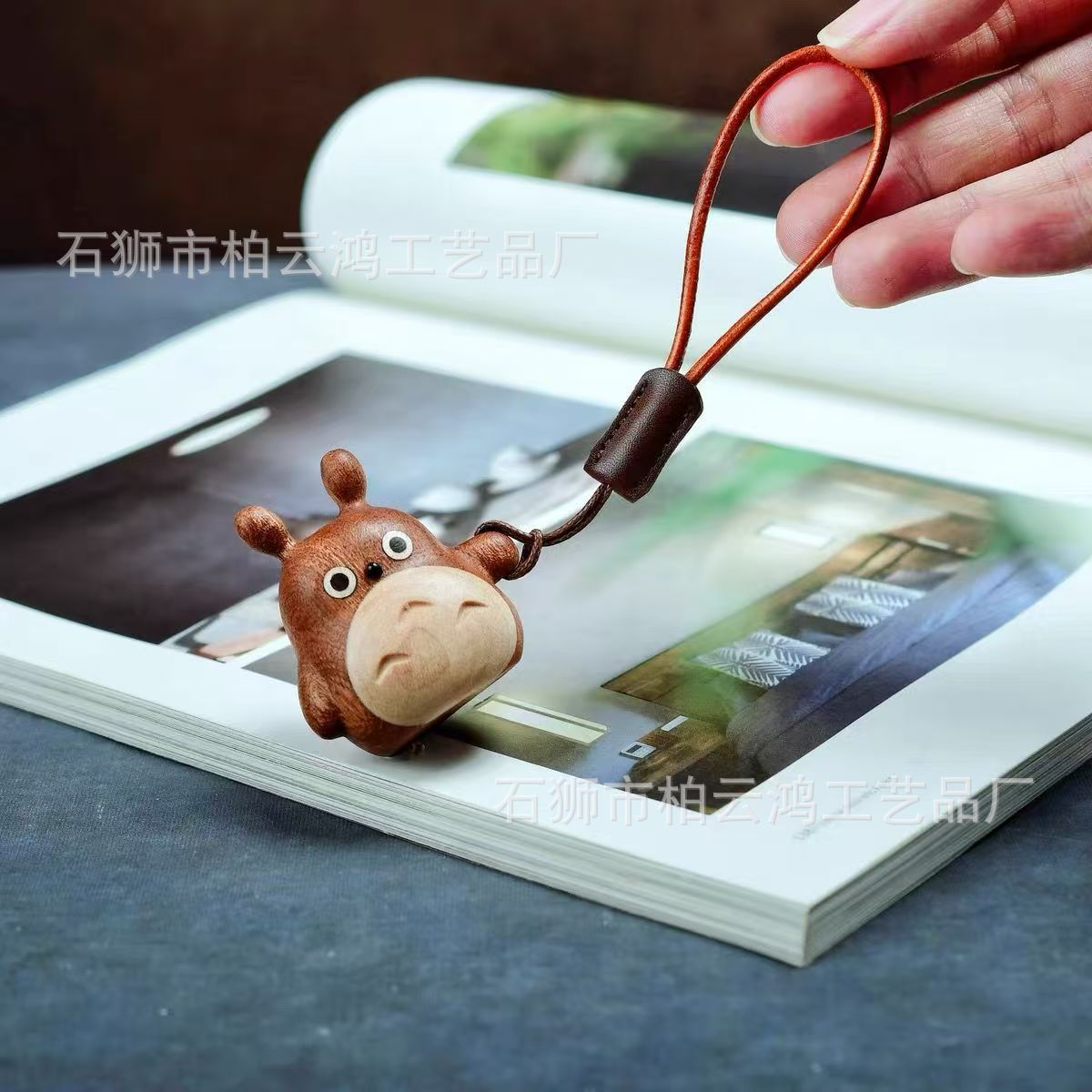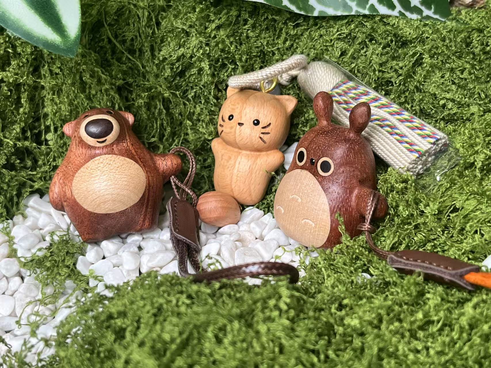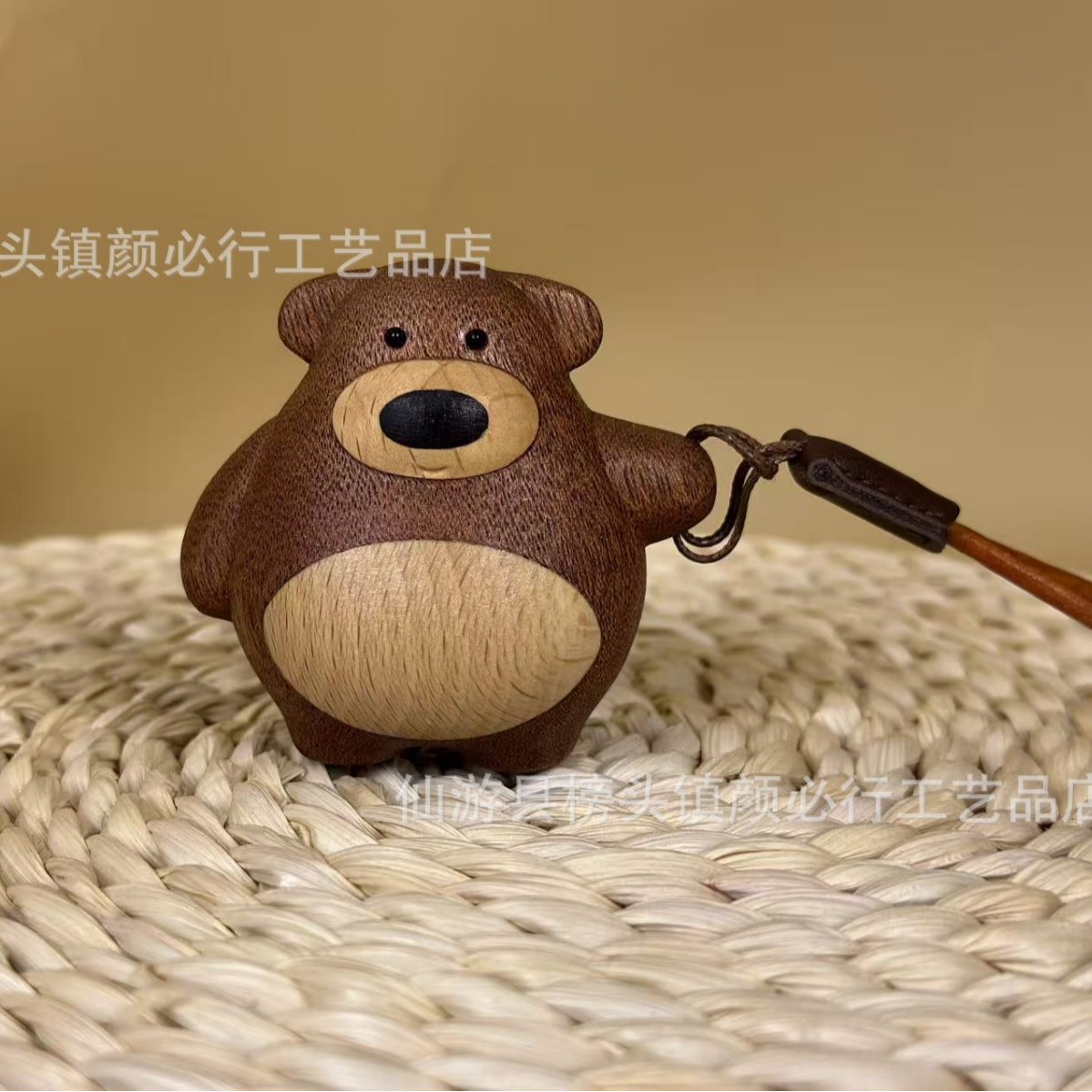 直播爆款乌檀木白枫木小龙猫挂件创意木雕治愈礼物可爱小熊挂件