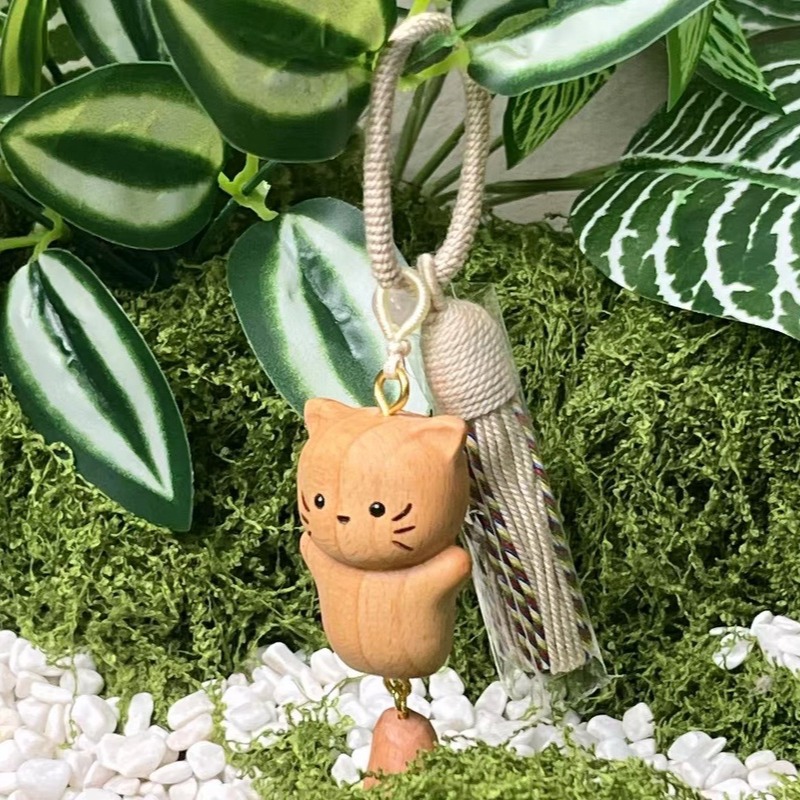 工場直販ブナ子猫ペンダントクリエイティブ彫刻ポータブルジュエリー無垢材子猫かわいいバッグペンダント