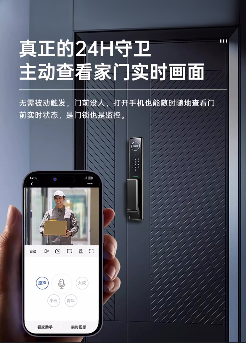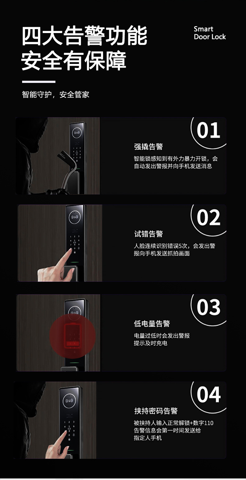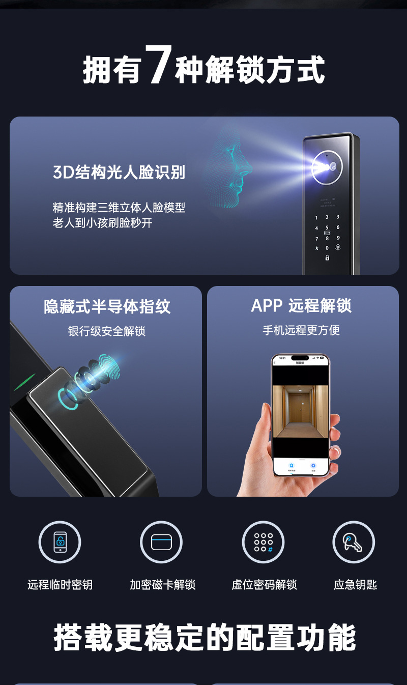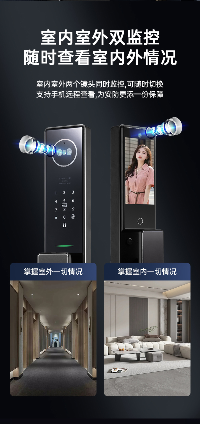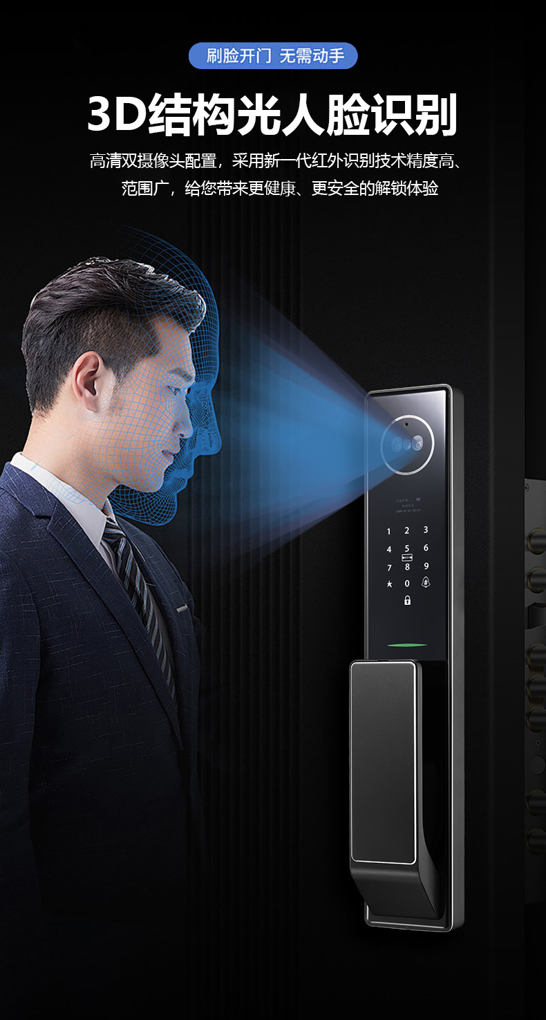 3D人脸识别全自动智能锁室内外监控对讲抓拍智能门锁防盗门指纹锁