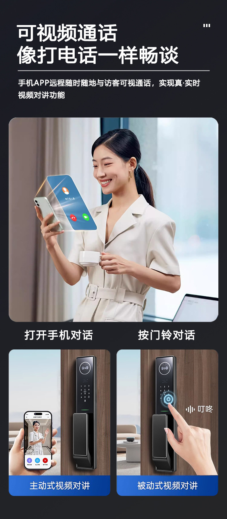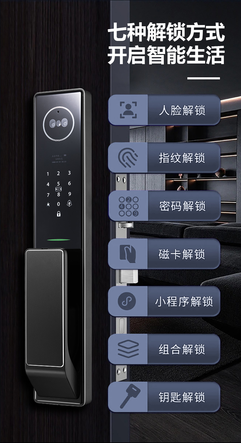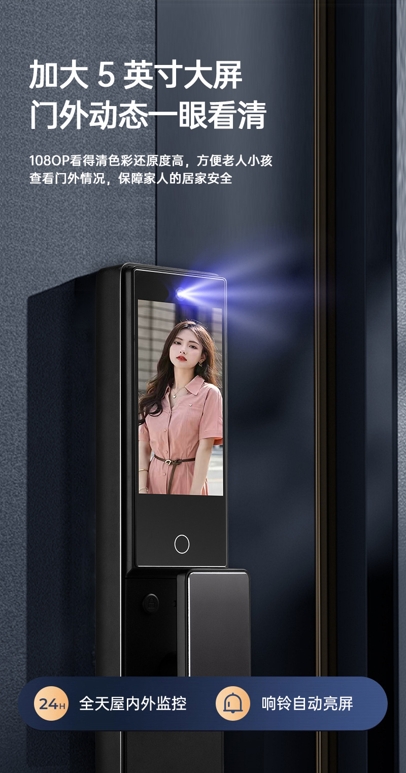 全自動アクティブインターコム掌静脈パスワードロック顔認識指紋ロック猫目防犯ドアスマートロック