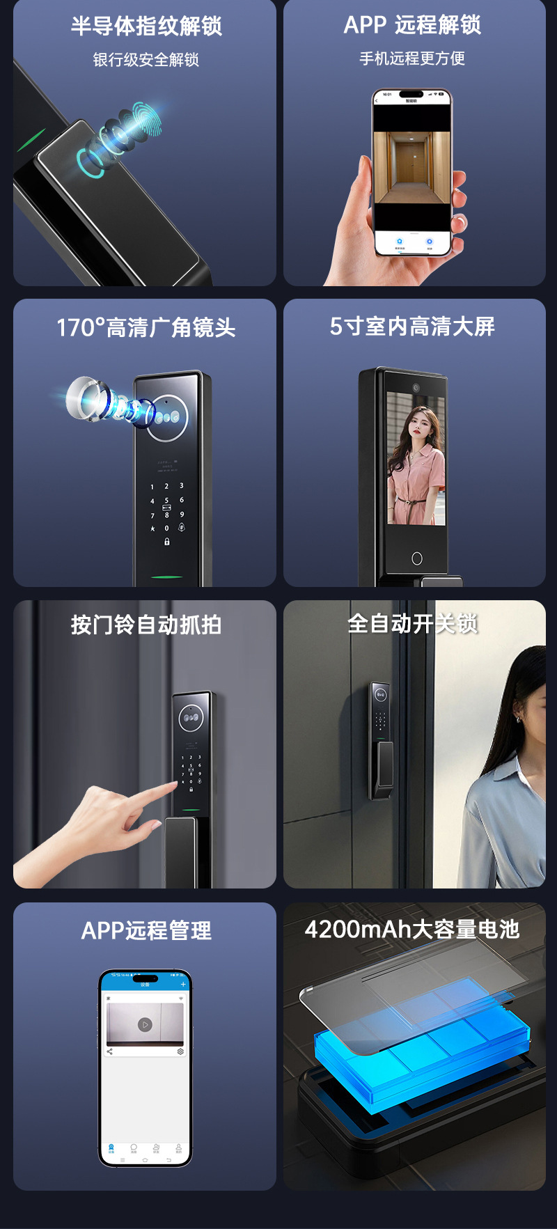 S958max指紋スマートドアロック顔認識可視対談パスワード落書き携帯電話遠隔ドア