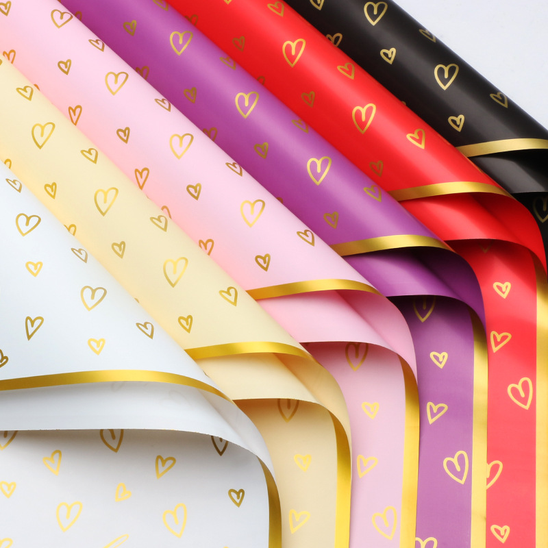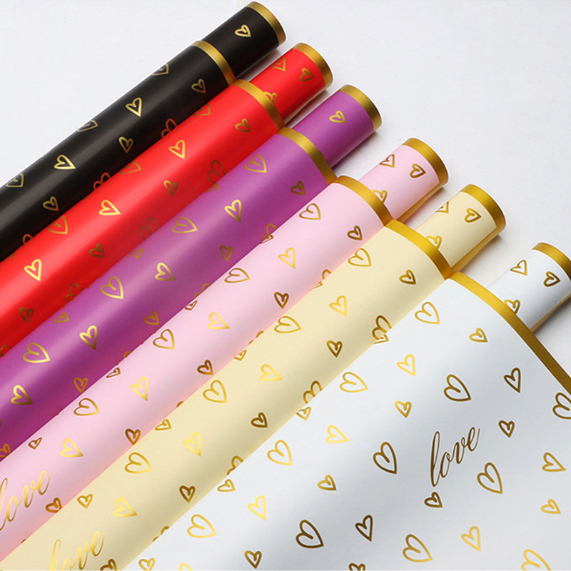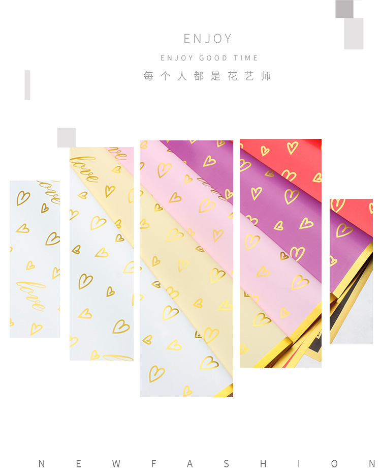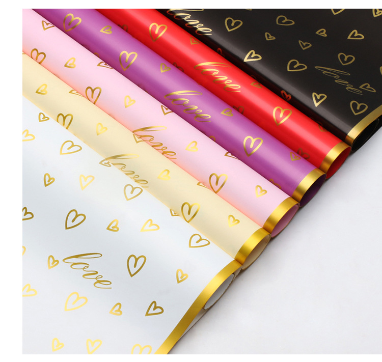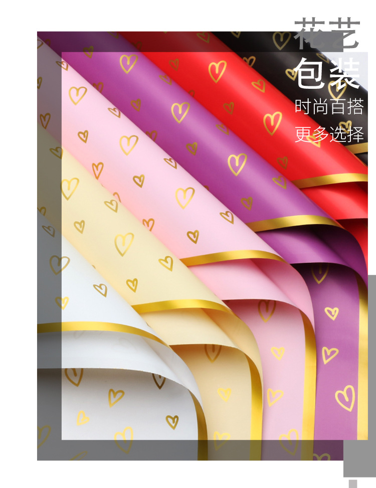 花熙金边LOVE爱心鲜花包装纸跨境外贸烫金爱心花束鲜花花店包花纸