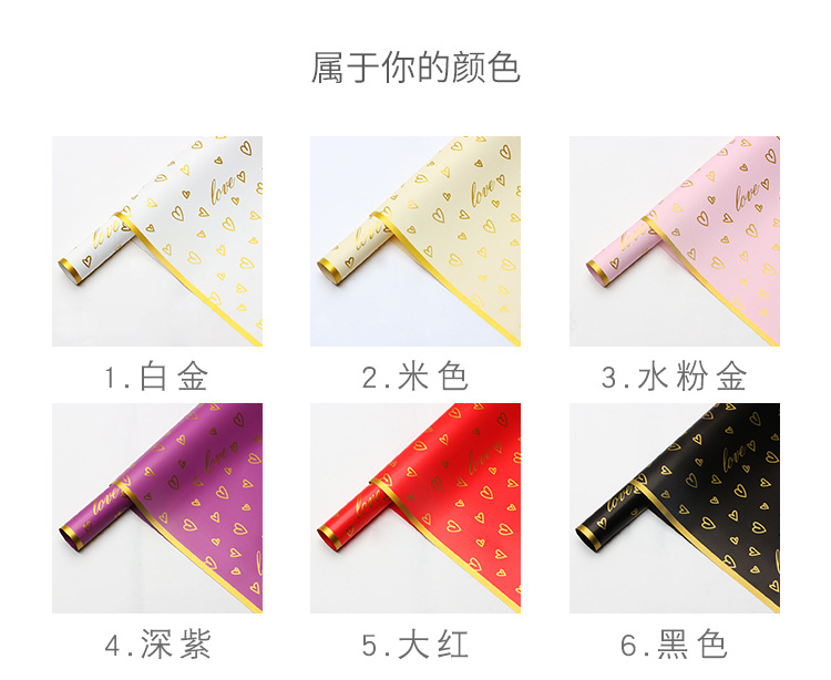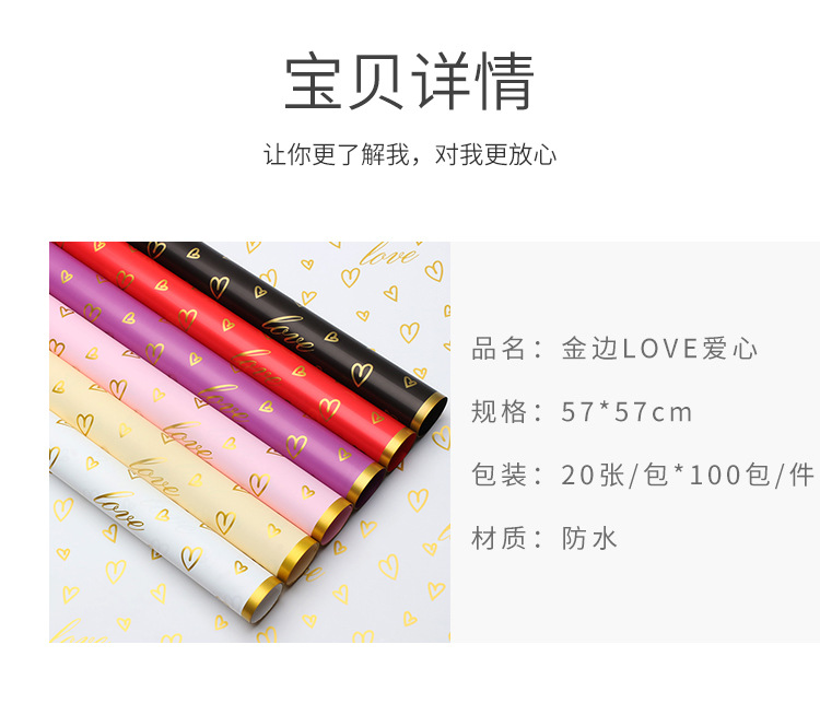 璀璨 金边LOVE爱心鲜花包装纸diy手工防水包花纸花店花艺资材批发