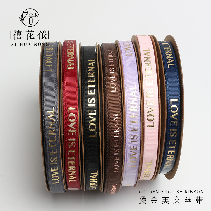 禧花ノン1cm箔押し高密度花リボン愛は永遠の英語ねじリボン花束花芸材料である