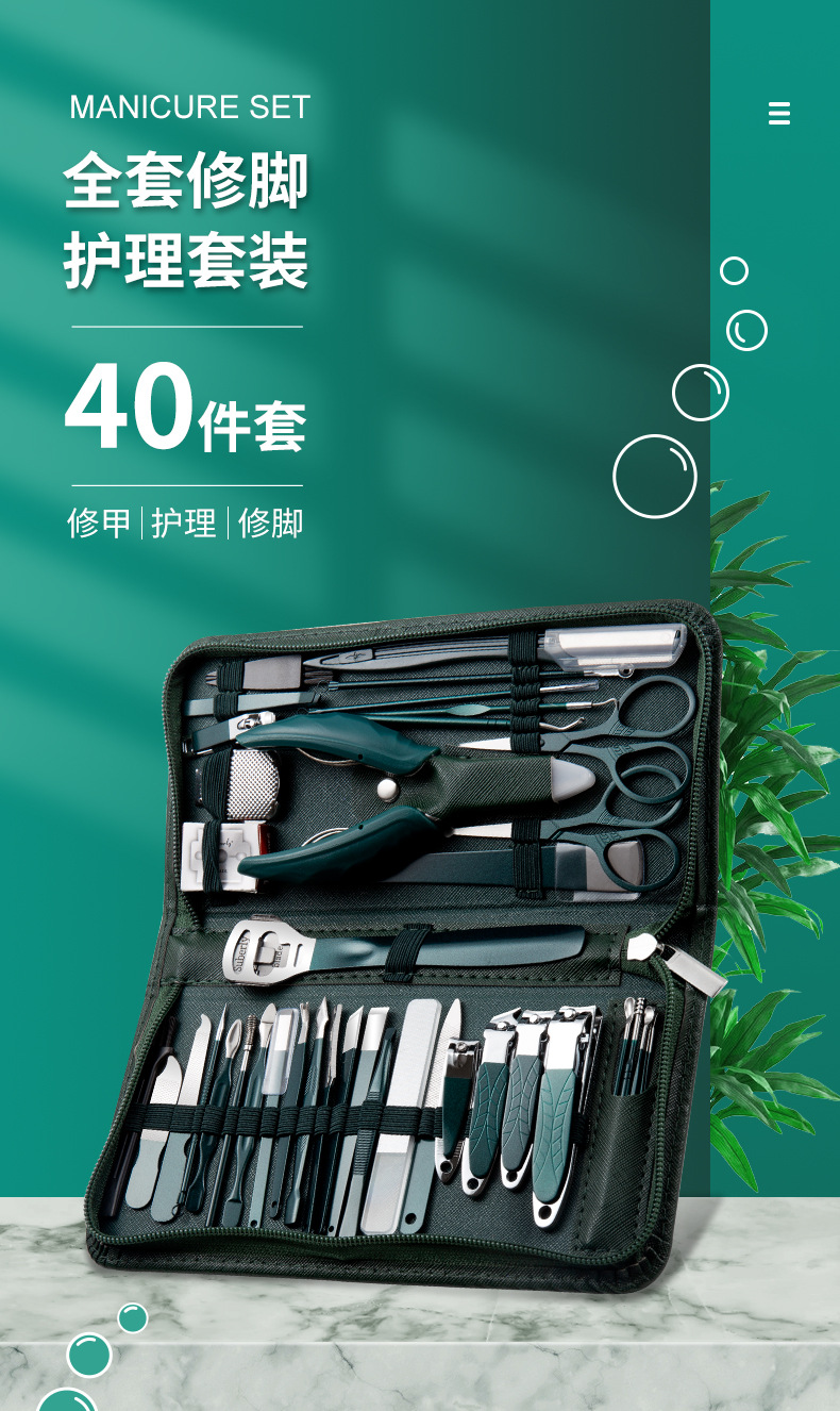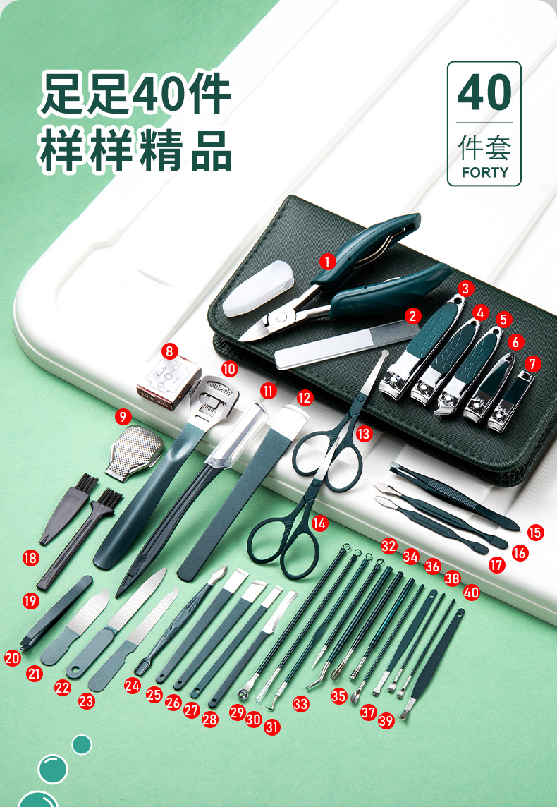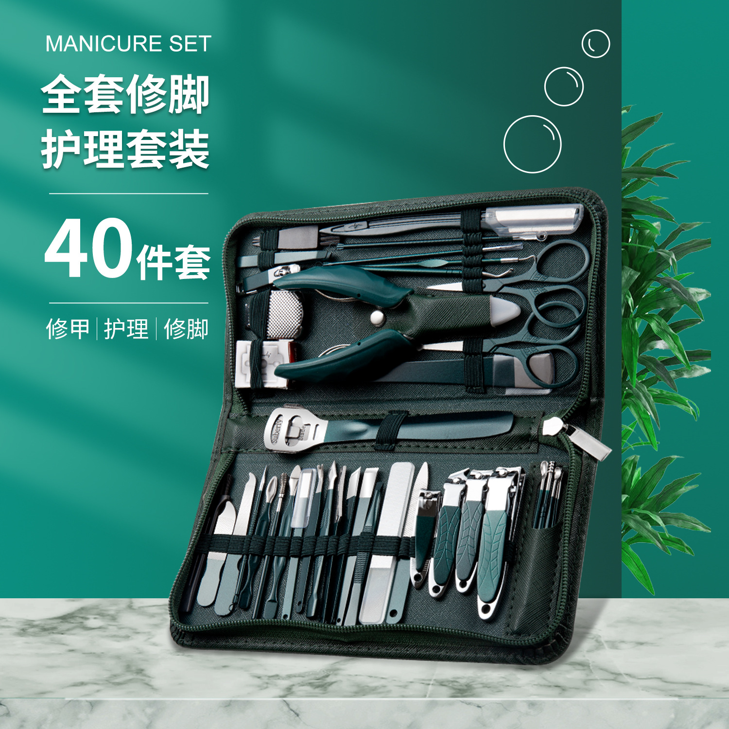 美甲工具指甲剪拉链套装便携式40件套修脚套装指甲刀套装一件起批