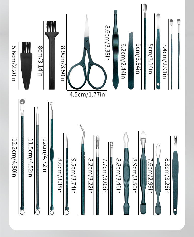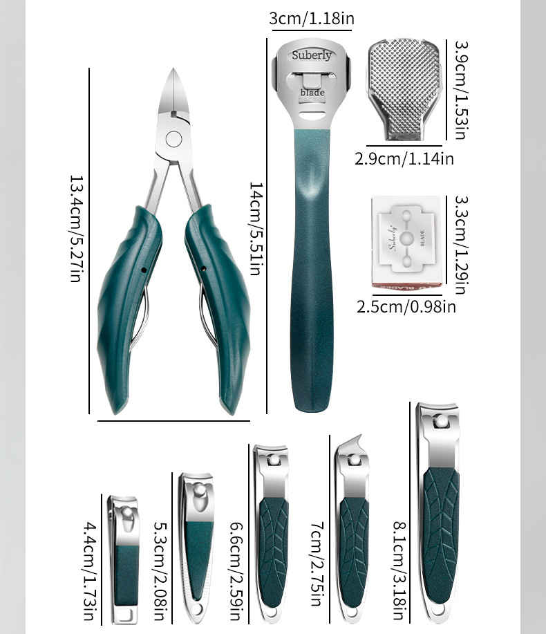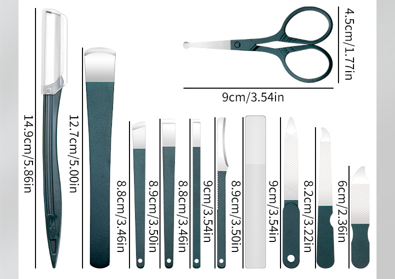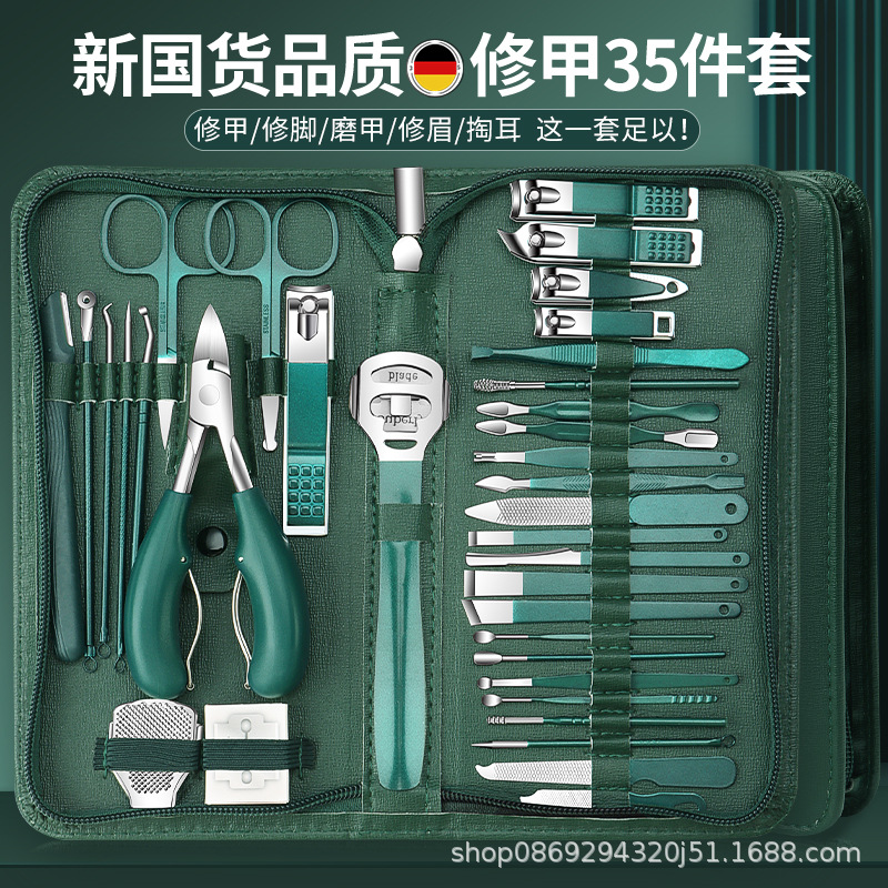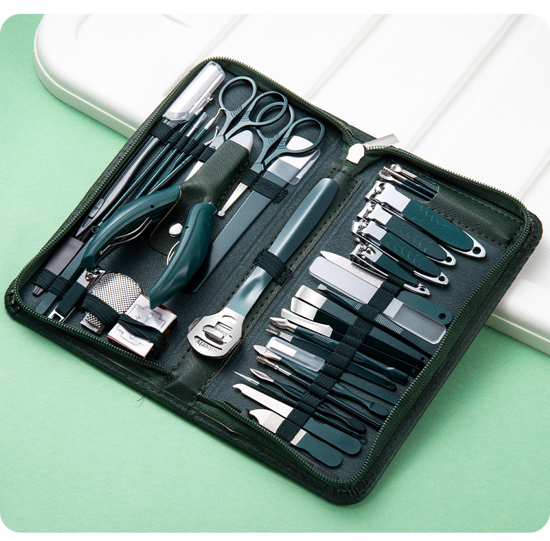 クロスボーダーネイルカッターセット ダークグリーン35点セット マニキュアツールセット 角質除去カッター ペディキュア用鷹嘴型ニッパー一式