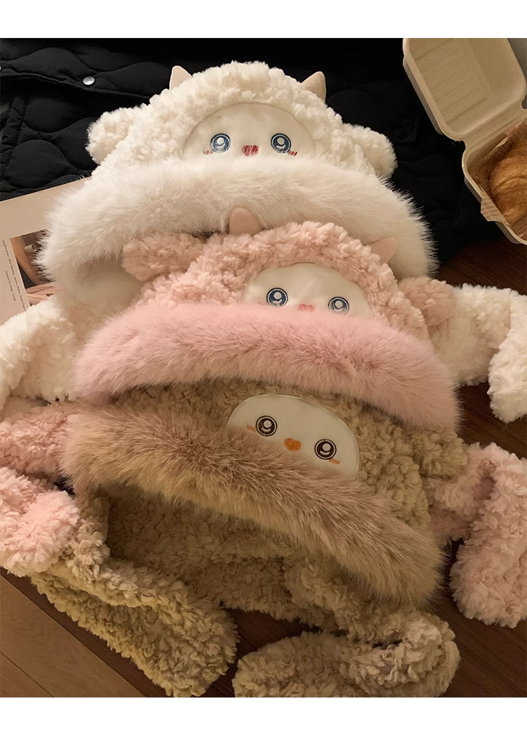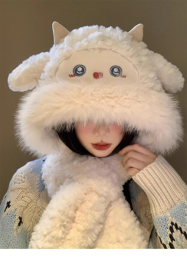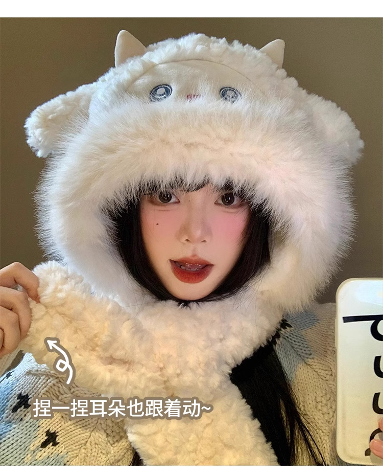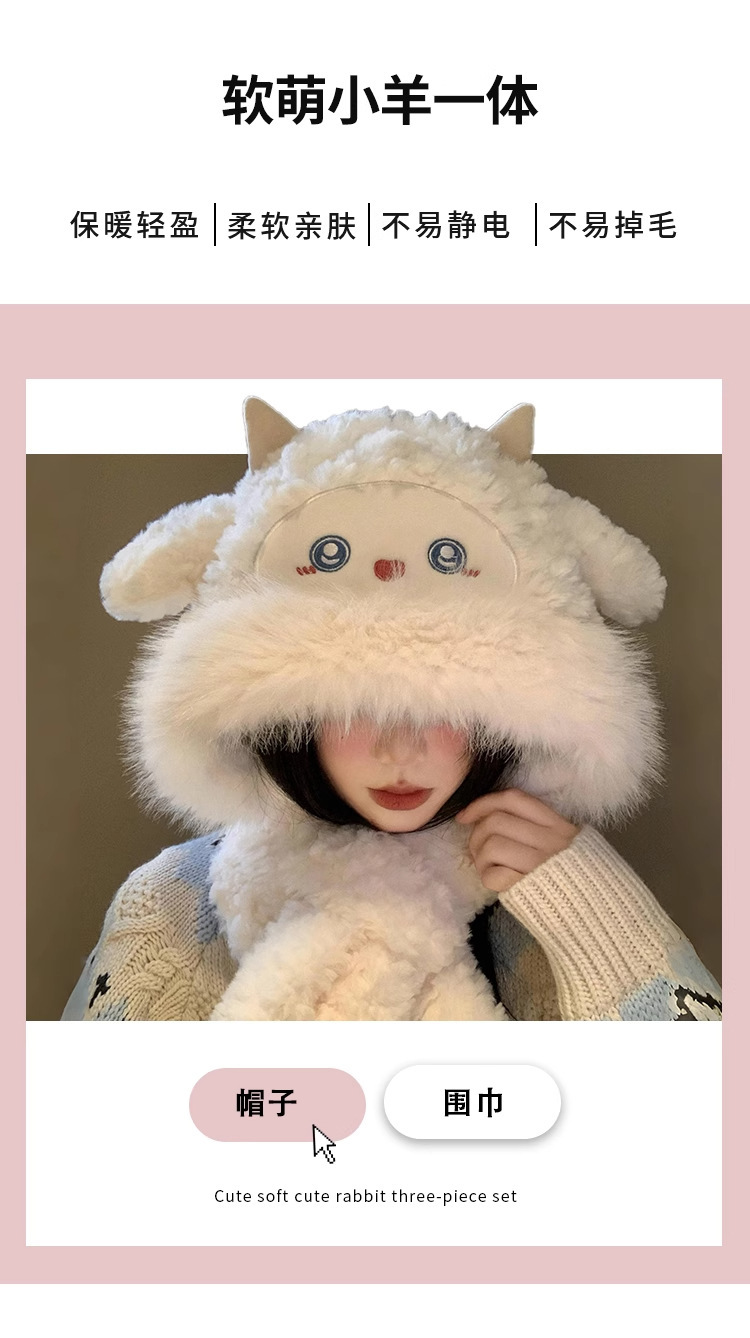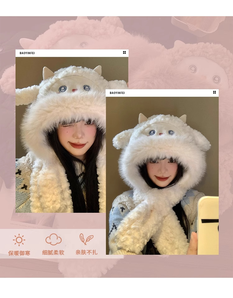 可爱小绵羊毛绒帽女冬季新款防寒保暖帽子围巾一体加厚护耳雷锋帽