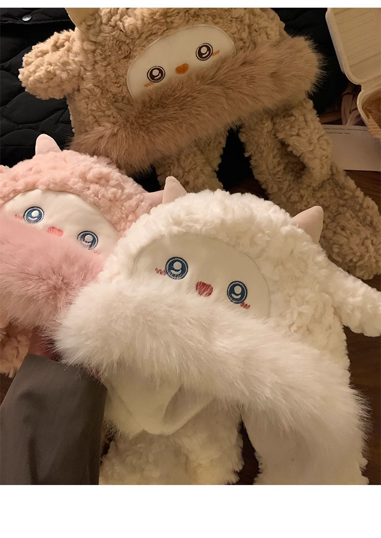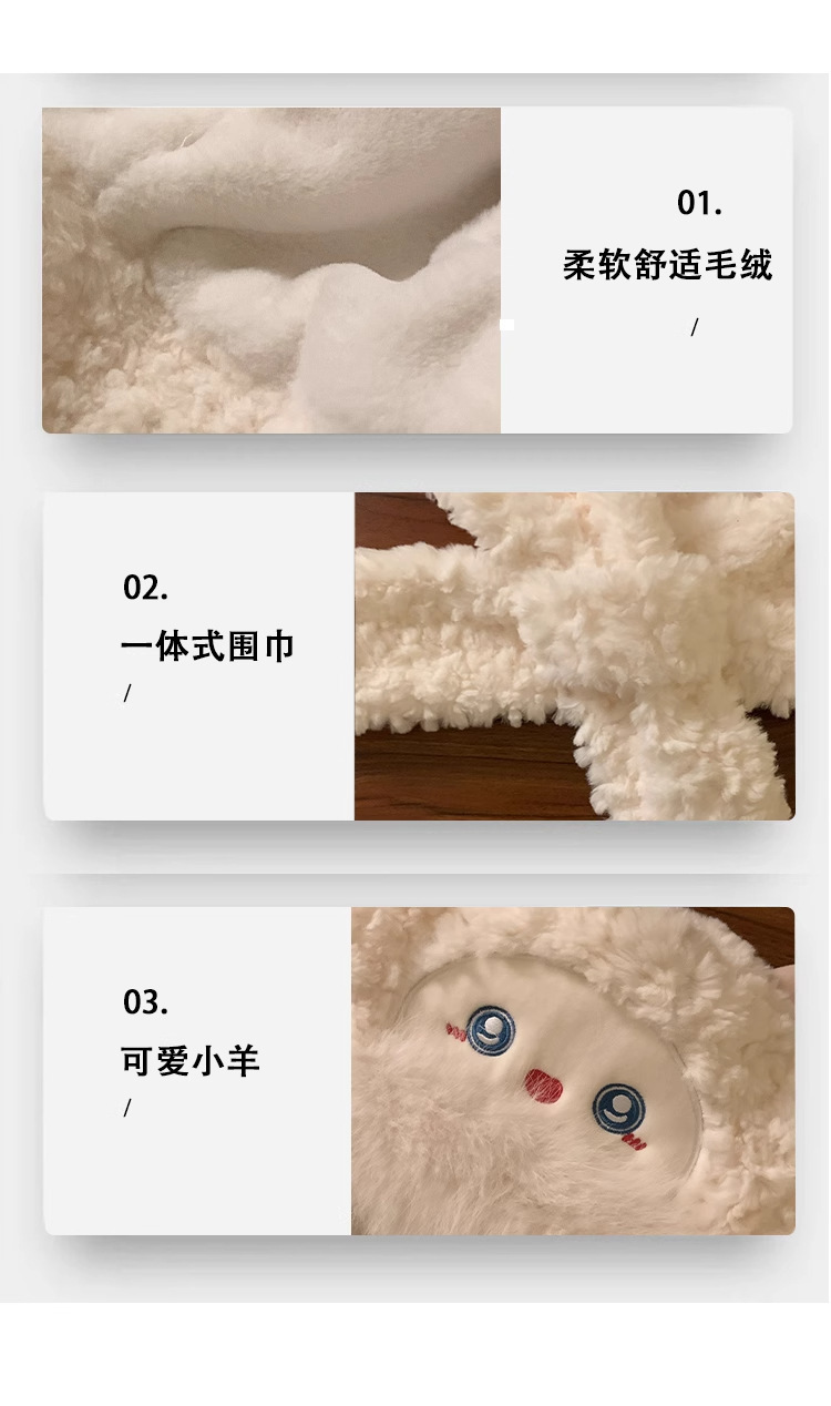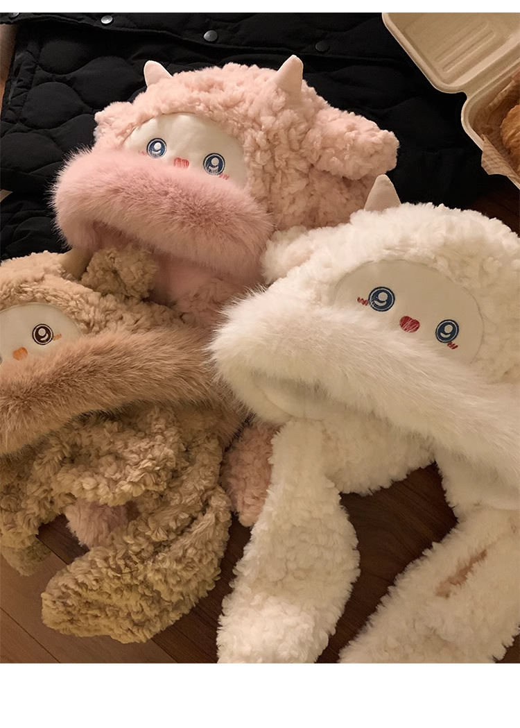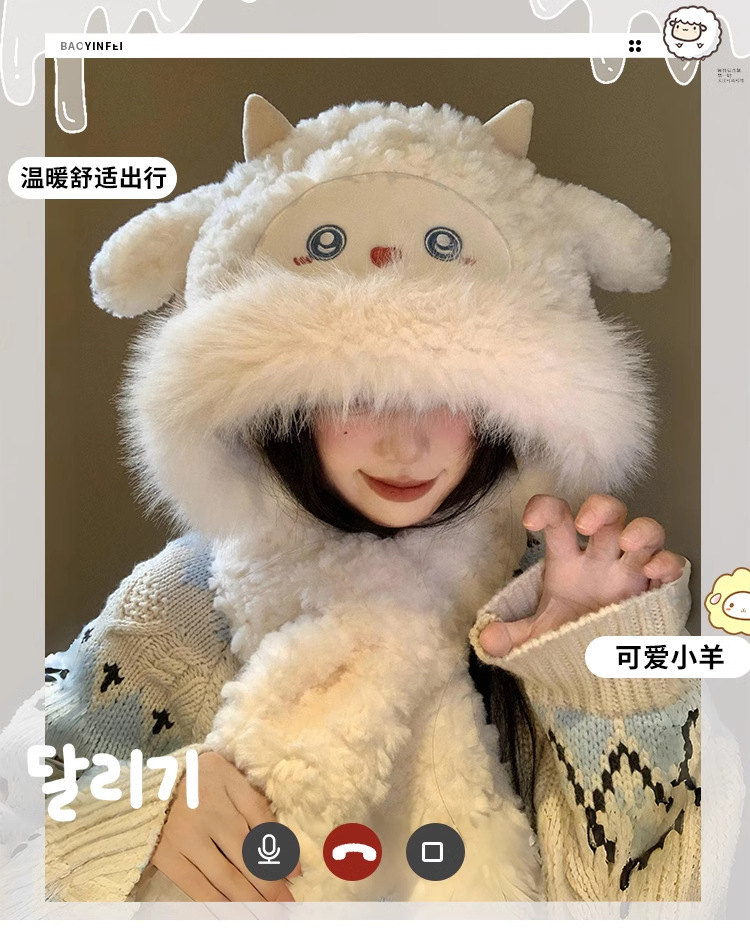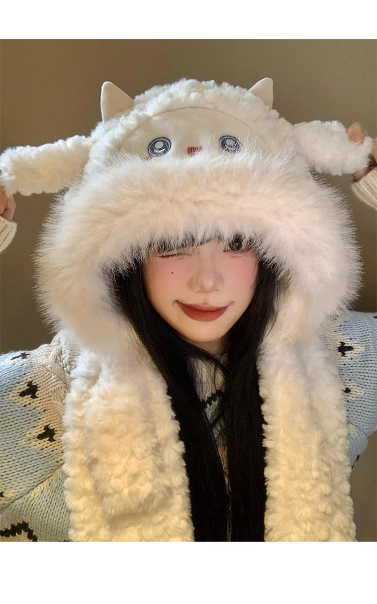可爱小绵羊毛绒帽女冬季新款防寒保暖帽子围巾一体加厚护耳雷锋帽