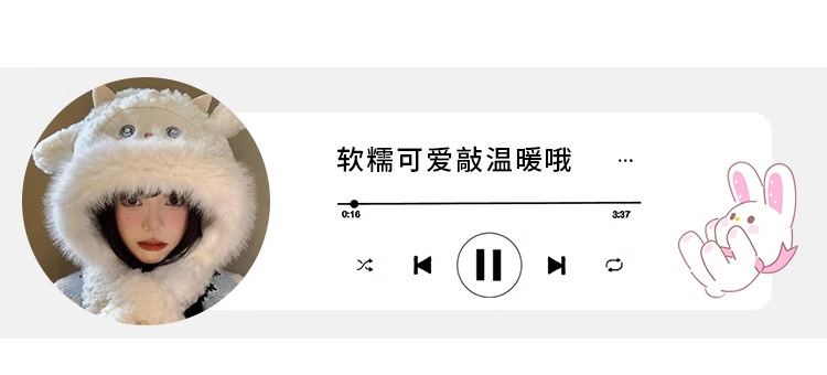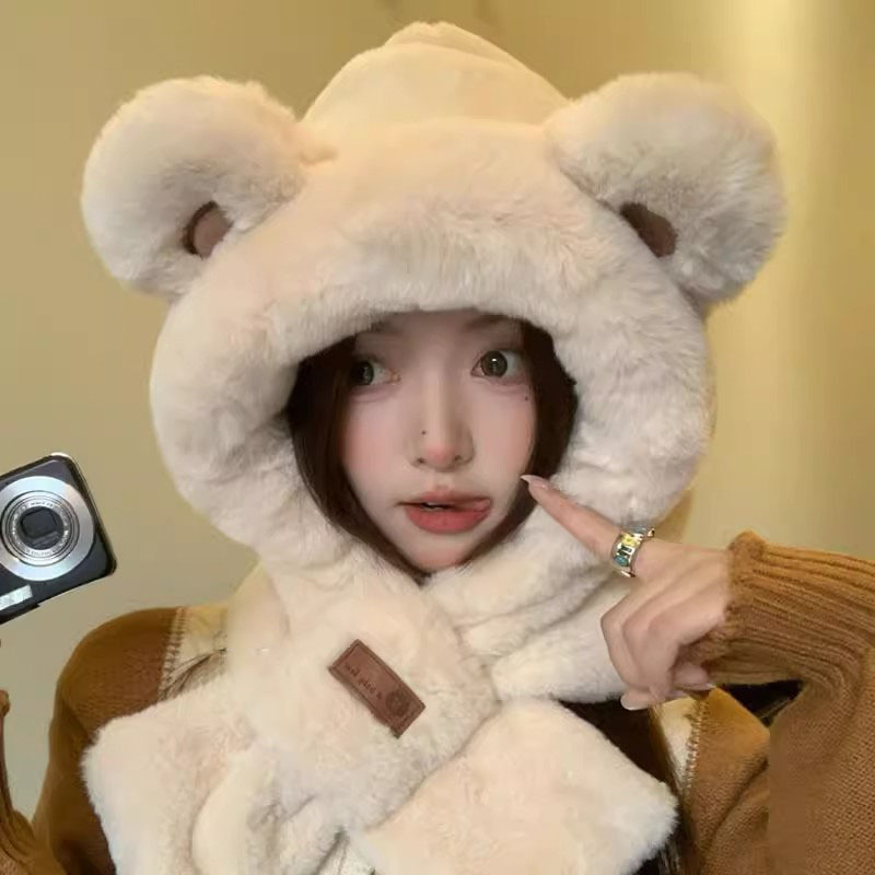 可爱小熊耳朵帽子围巾一体女冬季毛绒加厚保暖防寒骑行护耳雷锋帽