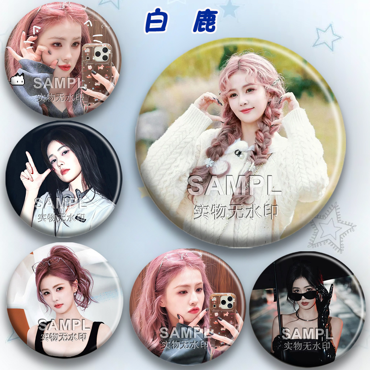 白鹿粉色头发应援吧唧周边镭射马口铁徽章明星爱豆胸针痛包挂件