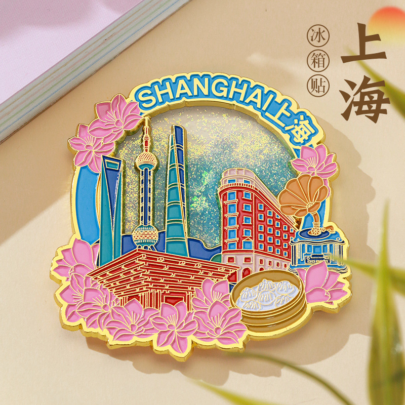 上海文化創造流砂冷蔵庫マグネット中国都市金属塗装景勝地国家トレンド三次元国家スタイル冷蔵庫マグネットカスタマイズ