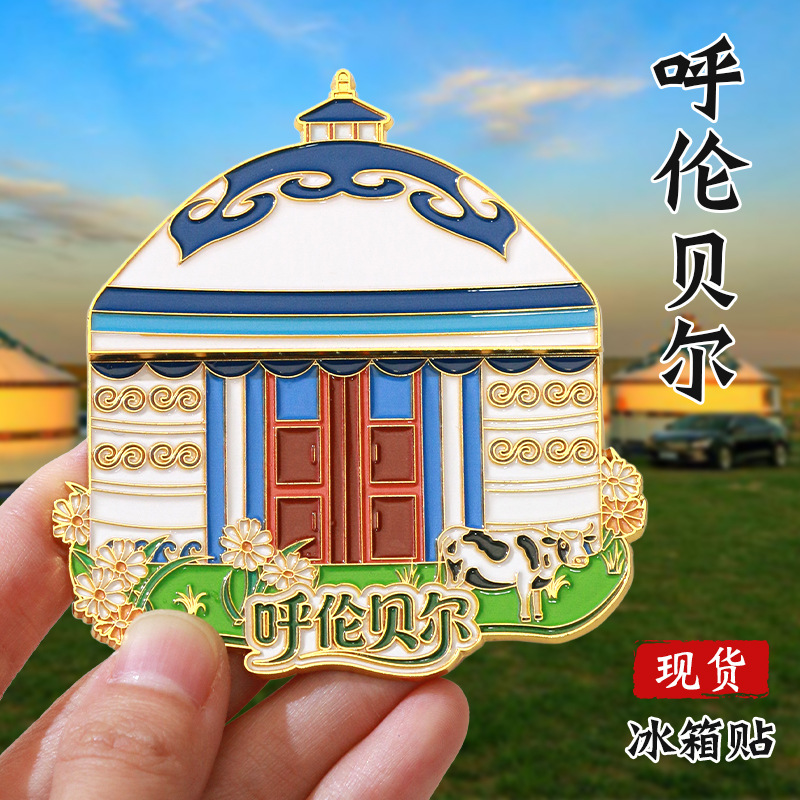 呼伦贝尔旋转创意城市冰箱贴金属烤漆内蒙古蒙古包文创冰箱贴定制