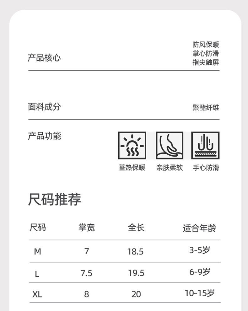 新款儿童手套男女保暖户外运动防滑防水寒加绒骑行小童中大童触屏