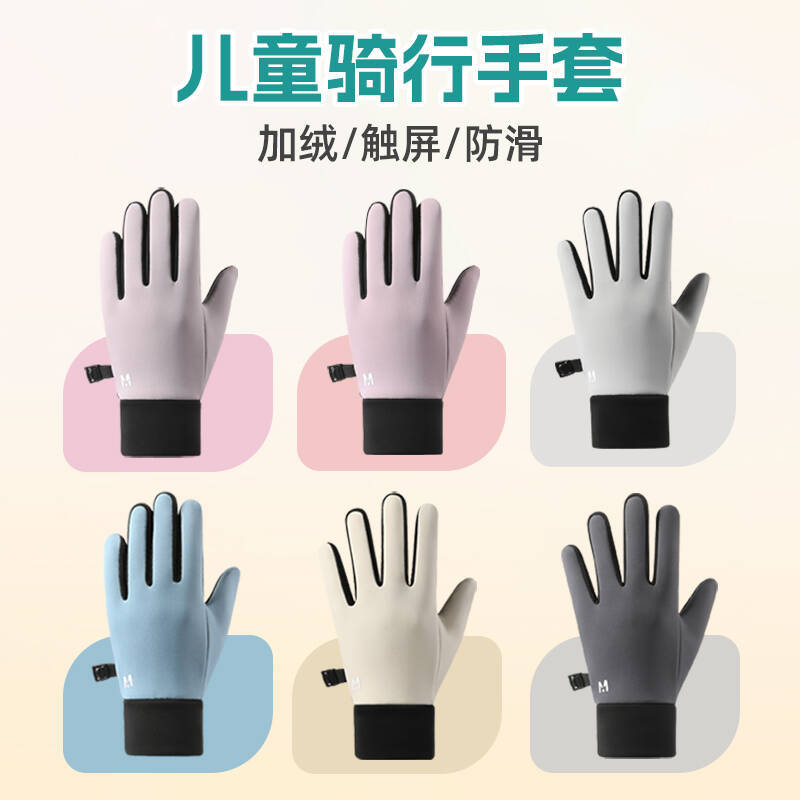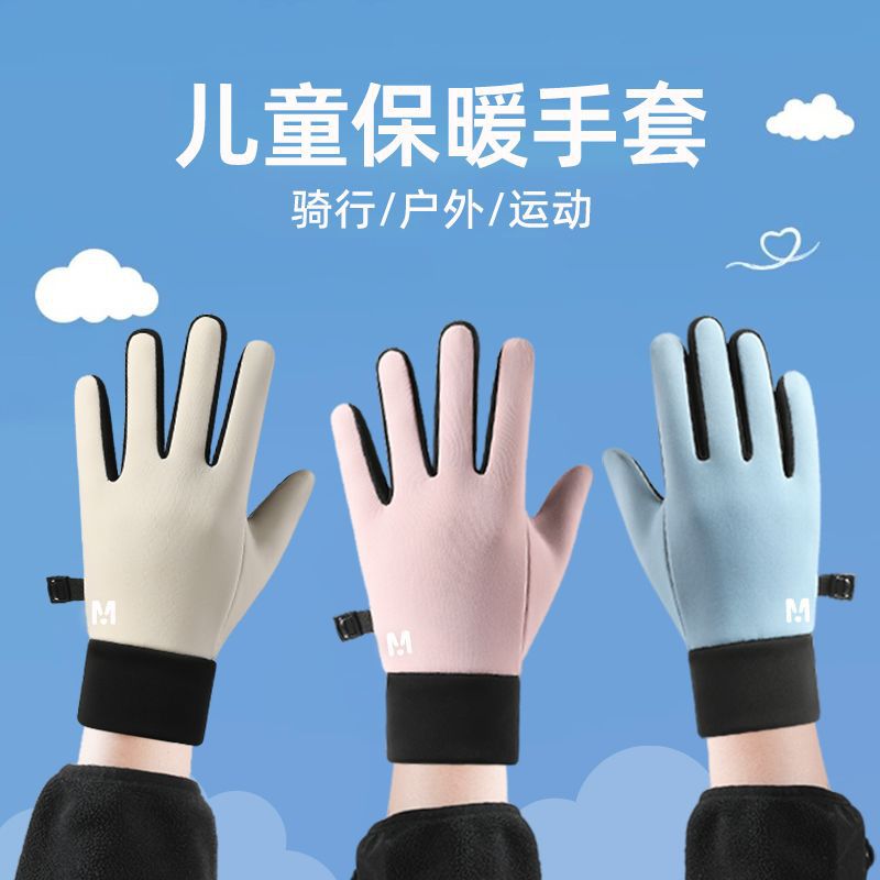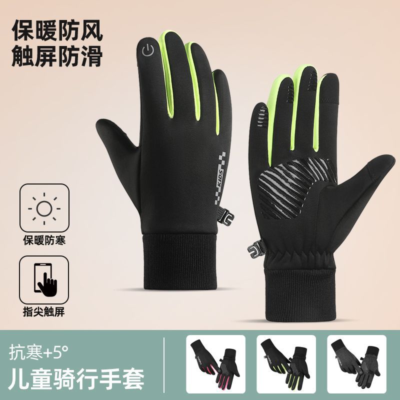 児童手袋冬保温自転車アウトドアスポーツ中の児童学生防寒ベルベット電気自動車タッチパネル手袋