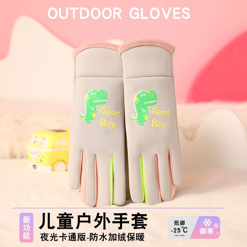 秋冬児童保温手袋夜光恐竜男女児童加毛五本指戸外自転車防風防寒防水