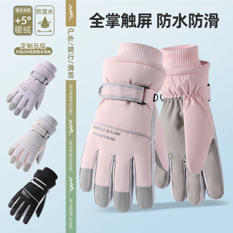 スキー手袋女性保温ベルベット電気自動車は防寒冬のタッチパネル学生が自転車に乗る防水防風が厚くなった