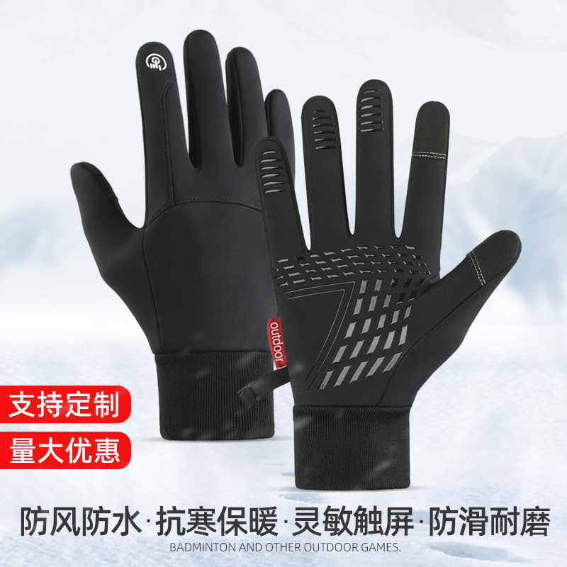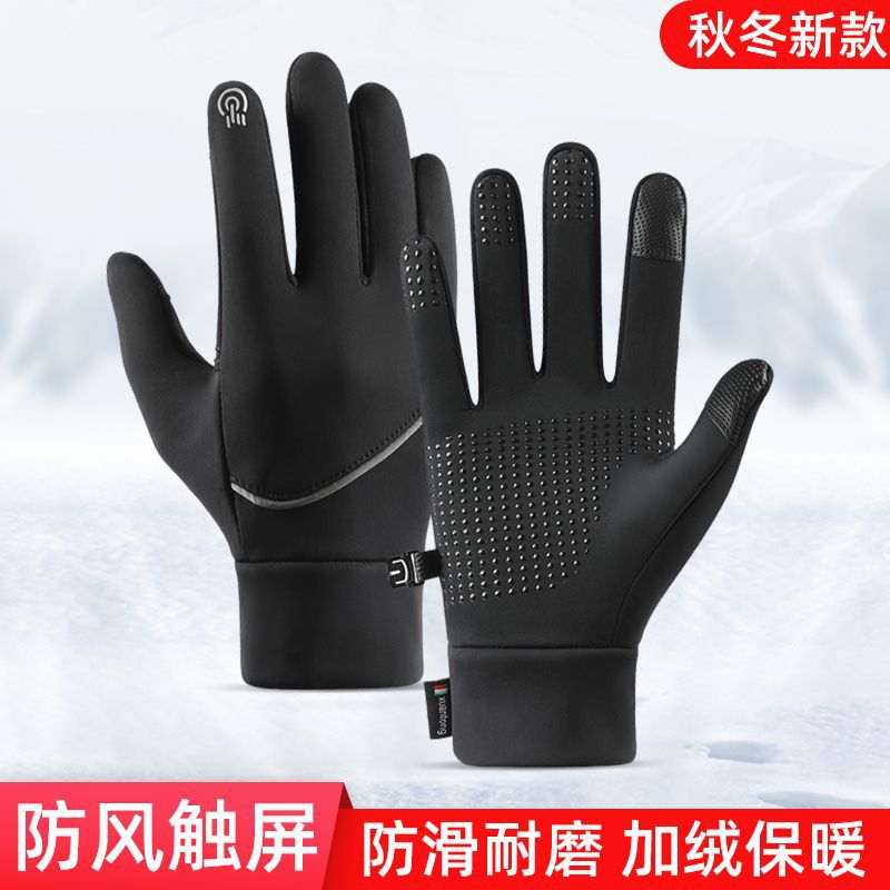 手袋男性冬保温ベルベット自転車冬女性防風防水滑り止めタッチパネル電動運転防寒越境