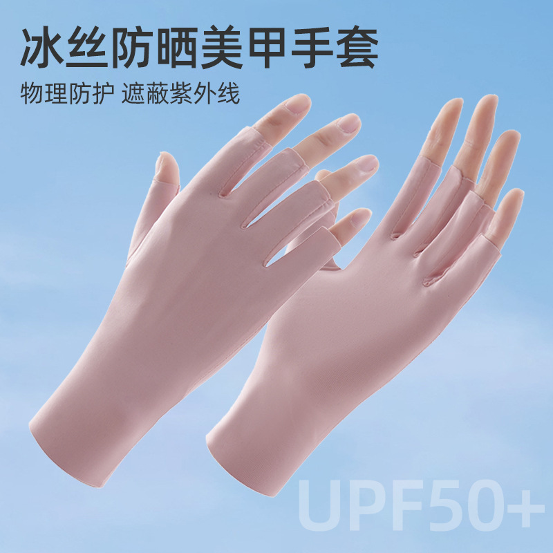 ネイルアート手袋紫外線防止氷糸半指滑り止め日焼け止めランプ放射線防止爪専用防黒漏れ指