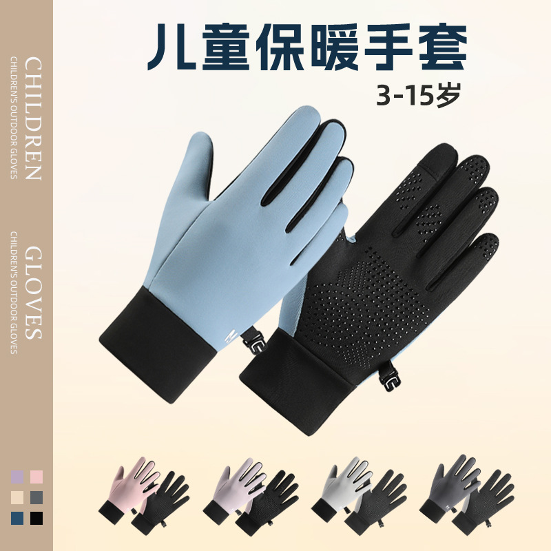 新型児童保温手袋男女児童冬にベルベットのタッチパネルをつけて自転車に乗る滑り止めの中の児童防寒五本指