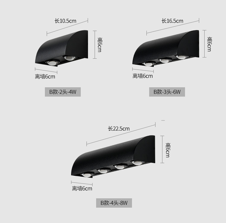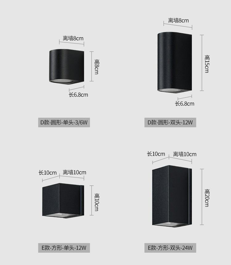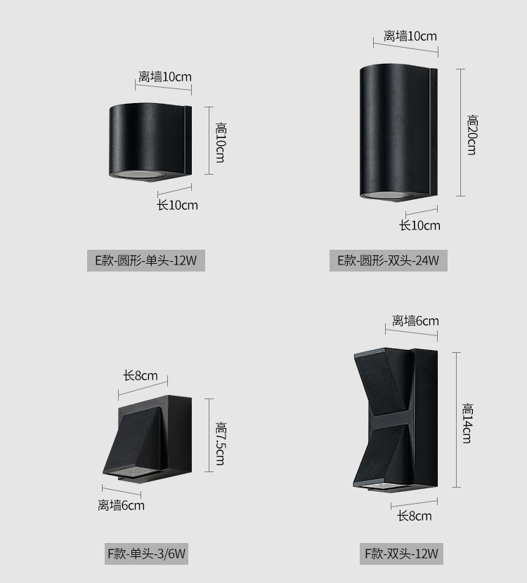 led户外壁灯防水洗墙射灯室外庭院阳台楼梯过道墙壁灯卧室床头灯
