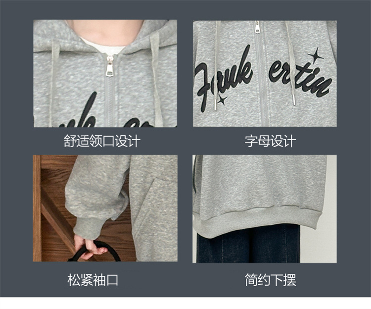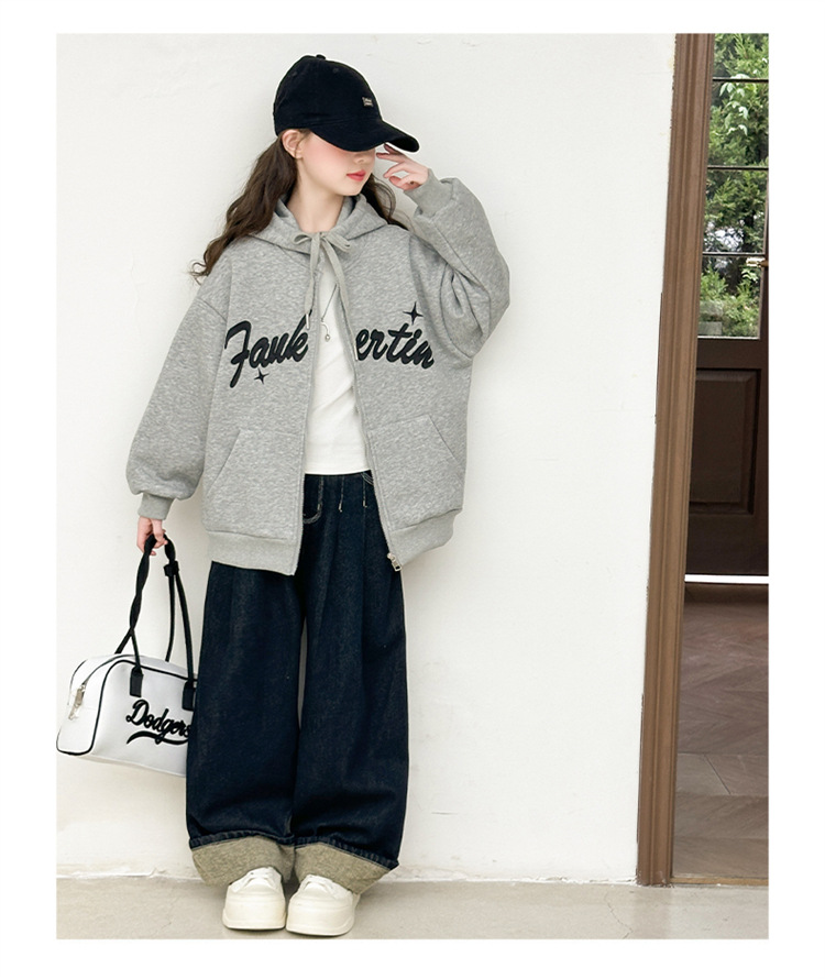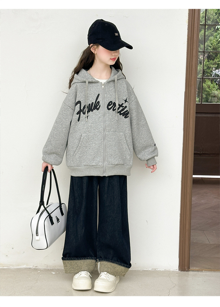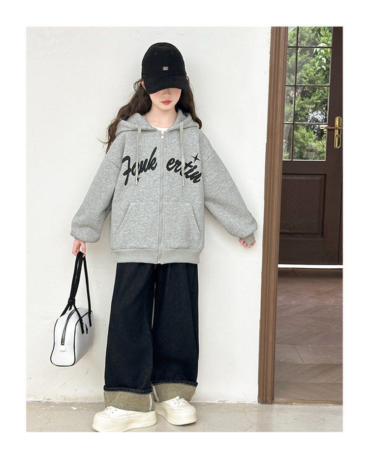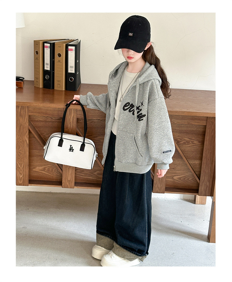 女童外套2025年秋季新款字母刺绣连帽拉链衫中大童宽松长袖上衣潮