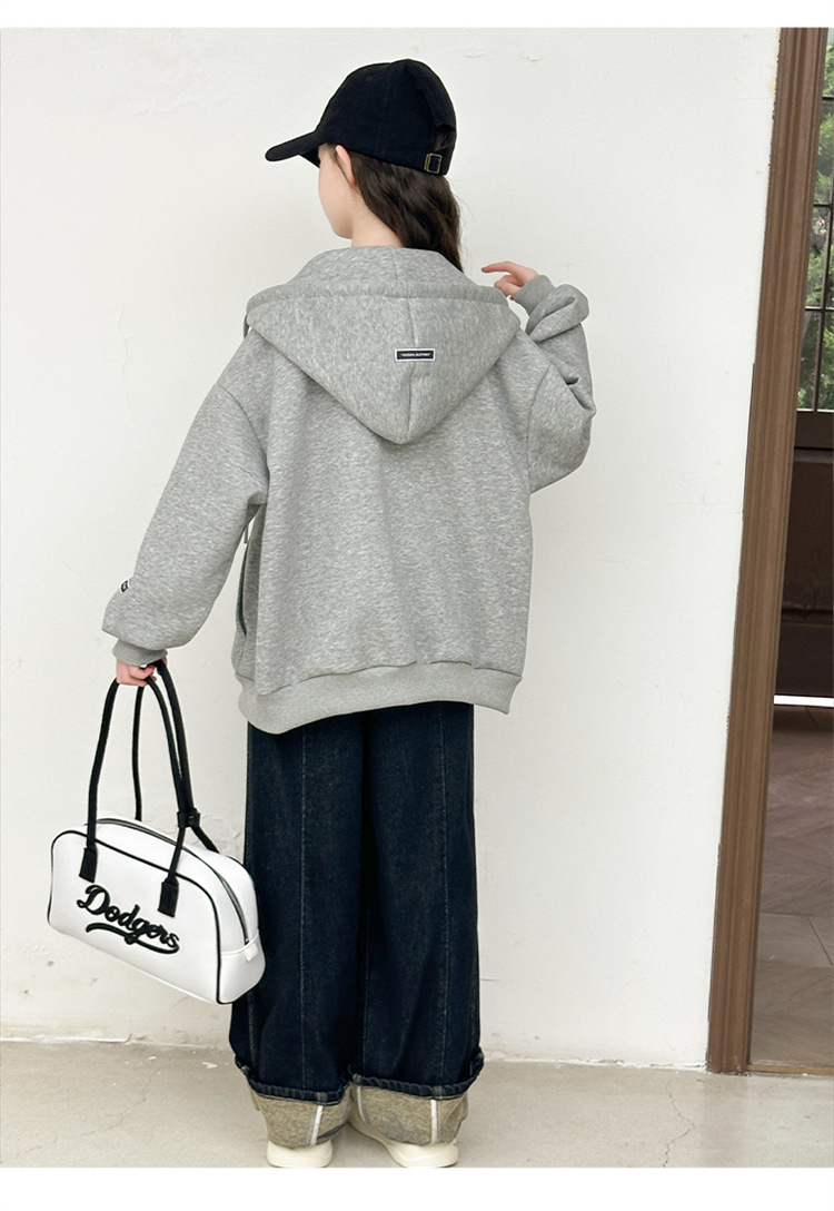 女童灰色连帽外套春秋款2025新款大童超好看开衫上衣儿童韩版秋装