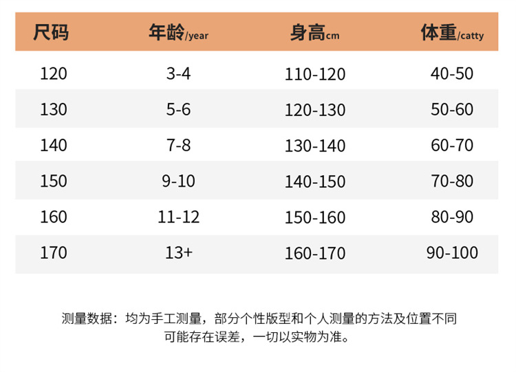 适合身高 120cm,130cm,140cm,150cm,160cm,170cm