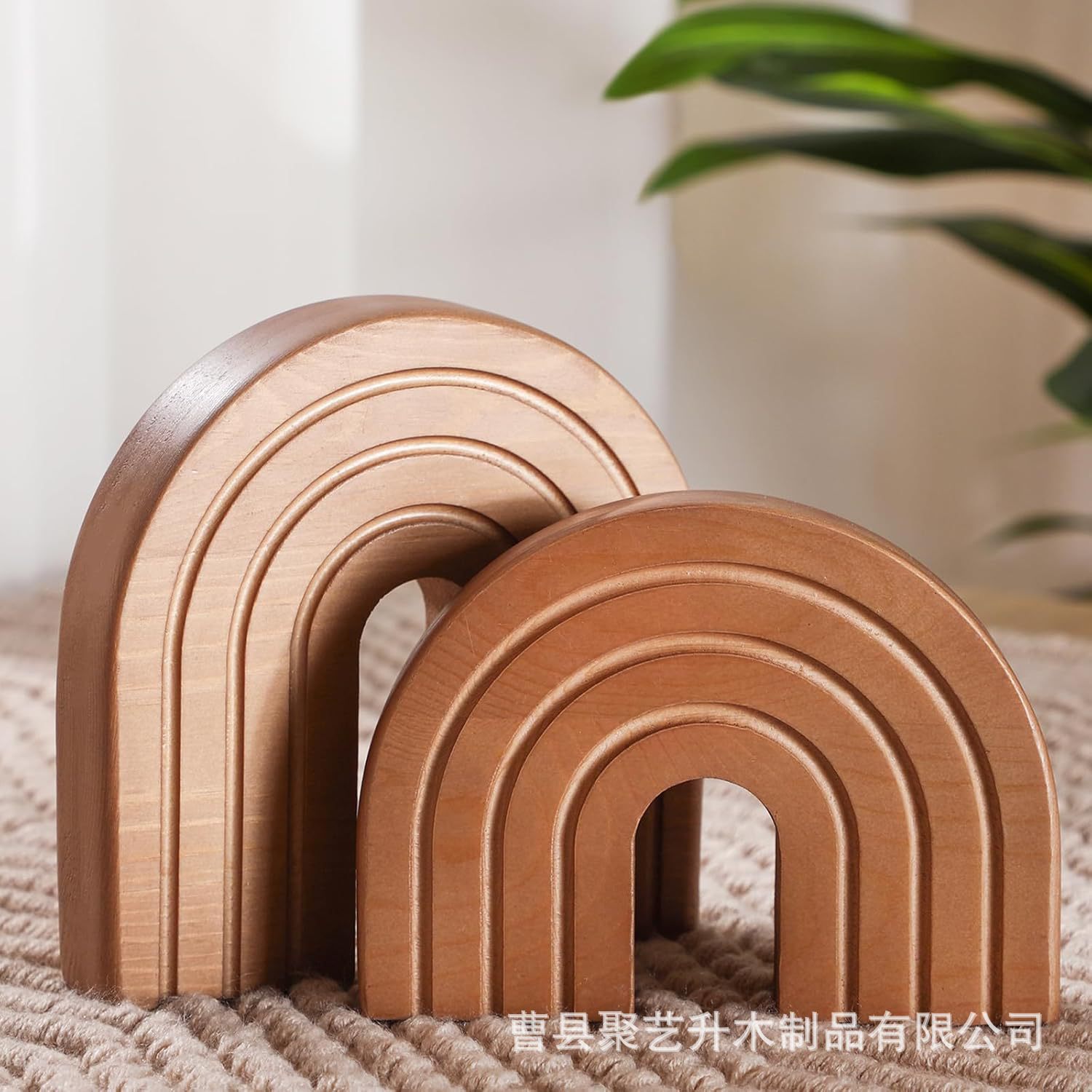 木製アーチ型デスクトップ置物ホーム玄関祭り木製装飾品レトロ実木2点セット雰囲気置物