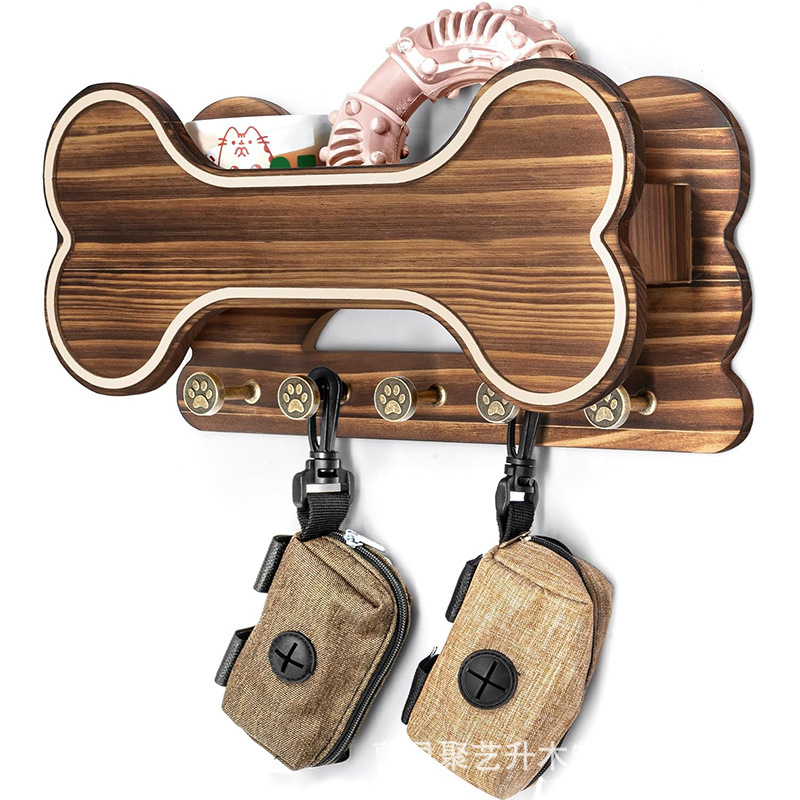 木製玄関キーラック犬の骨の形の収納ラック家庭用壁収納ラックフック付き家の装飾ラック