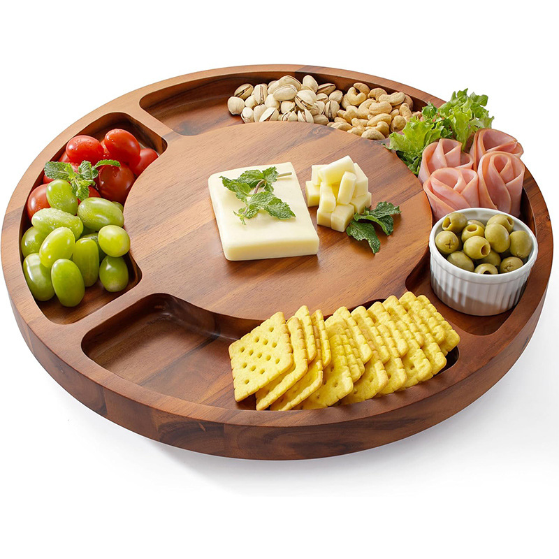 木製丸型トレー洋式食事収納トレーチーズプレート寿司フルーツ回転トレー