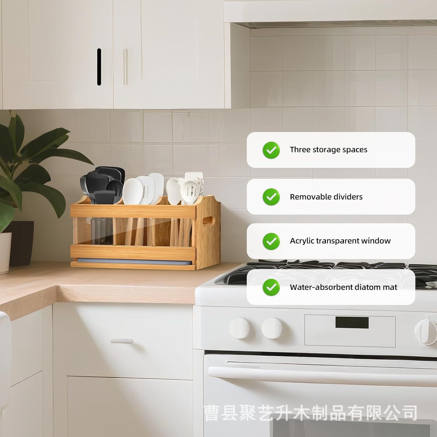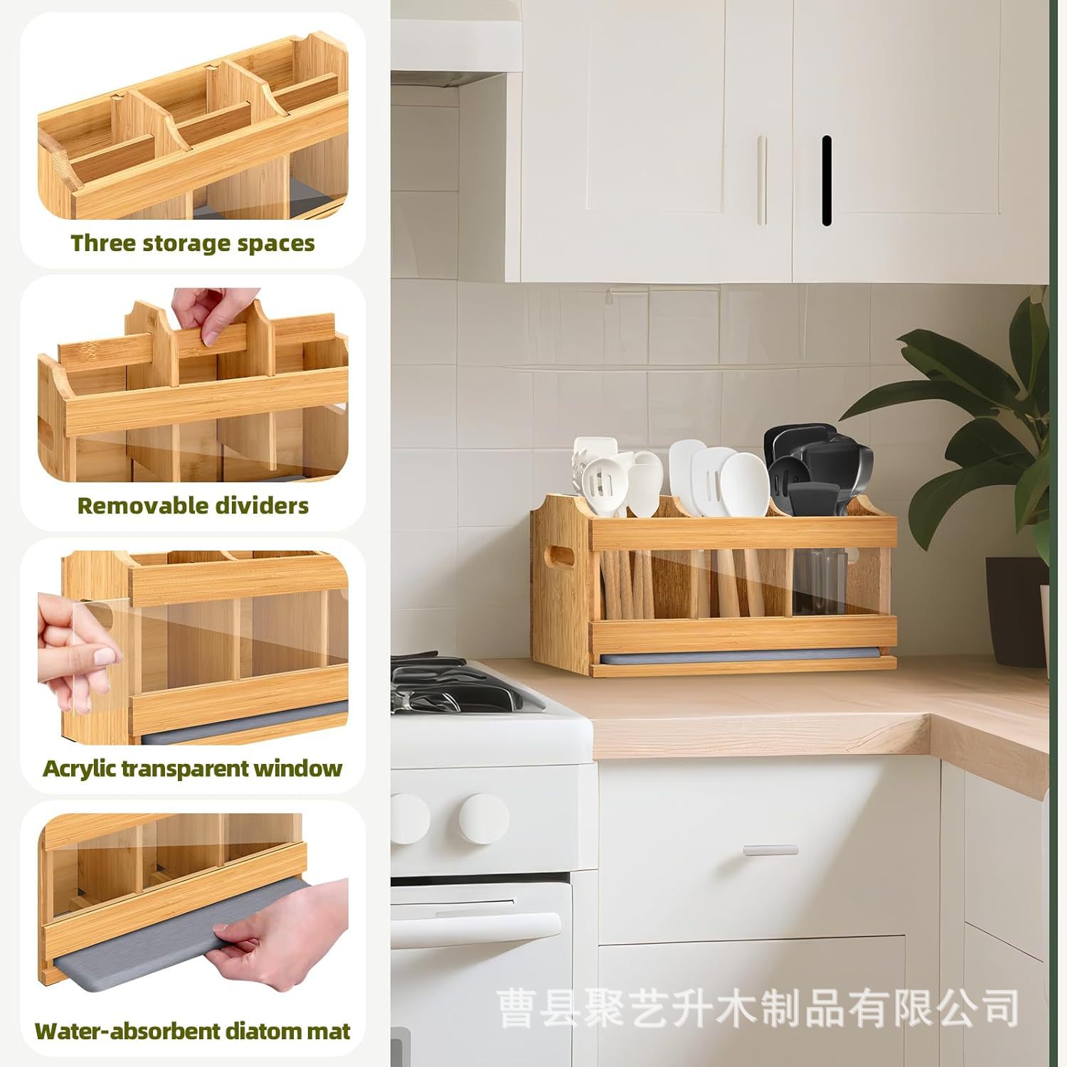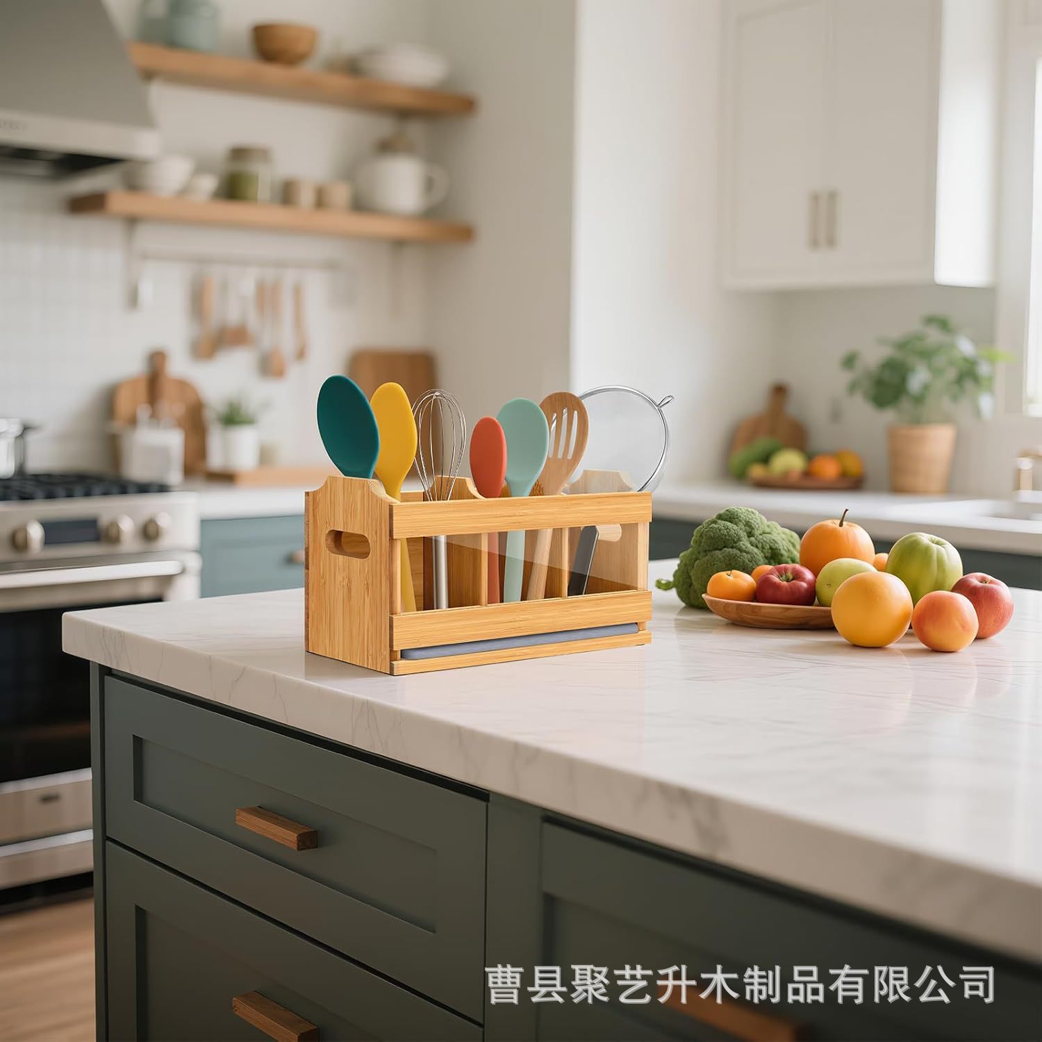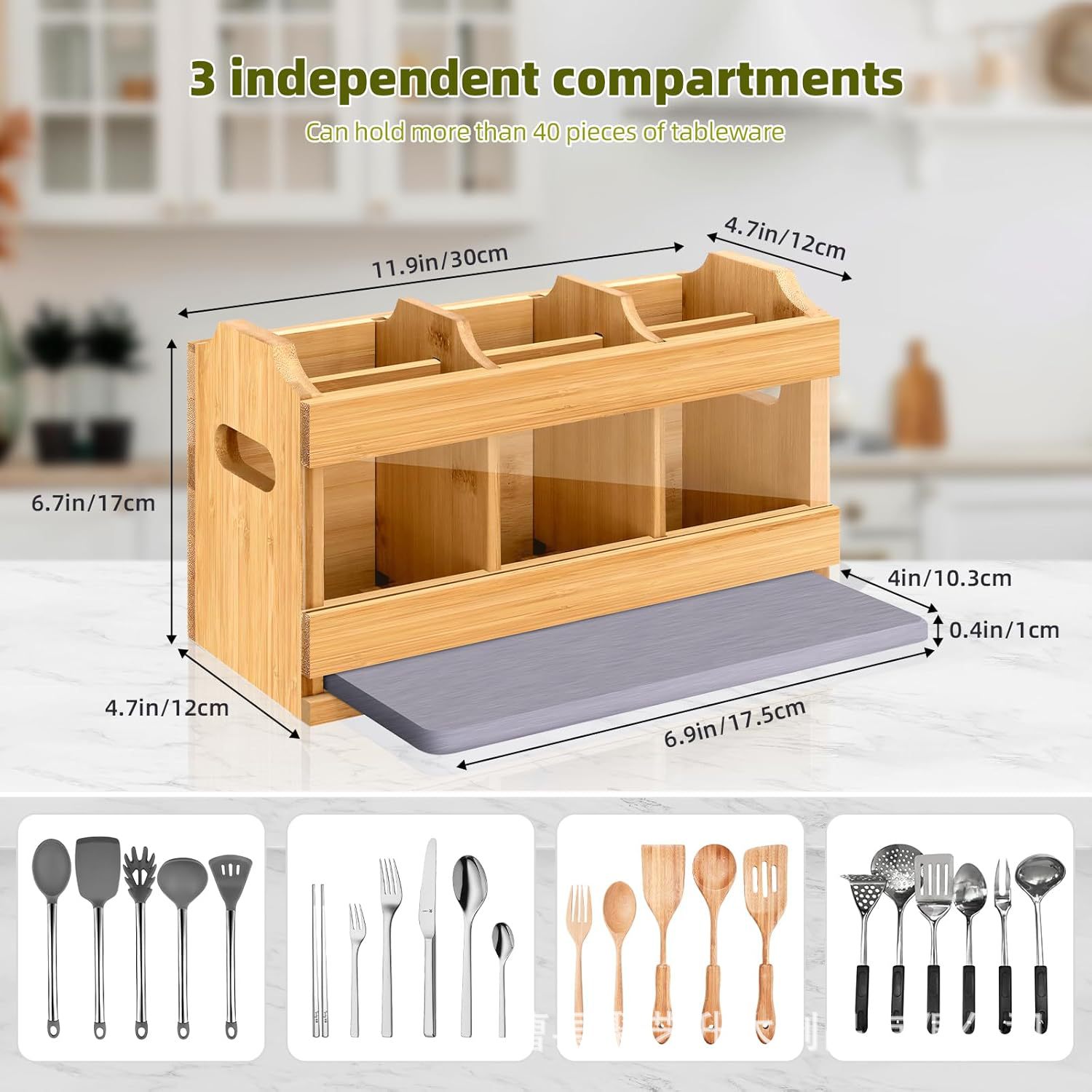 跨境木质厨具收纳盒筷子多格沥水架木质厨房分格餐具置物架收纳盒