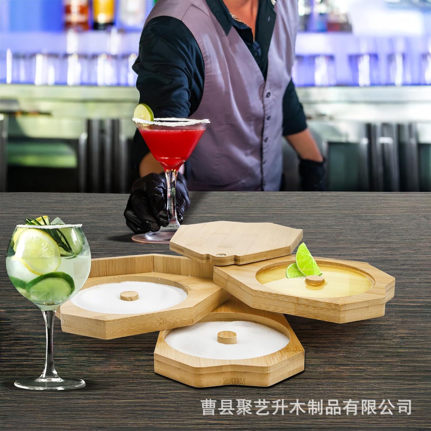 竹製三層塩ボックス回転式調味料瓶ワイン飲料塩ディップカクテルシュガーボックス調味料ボックス