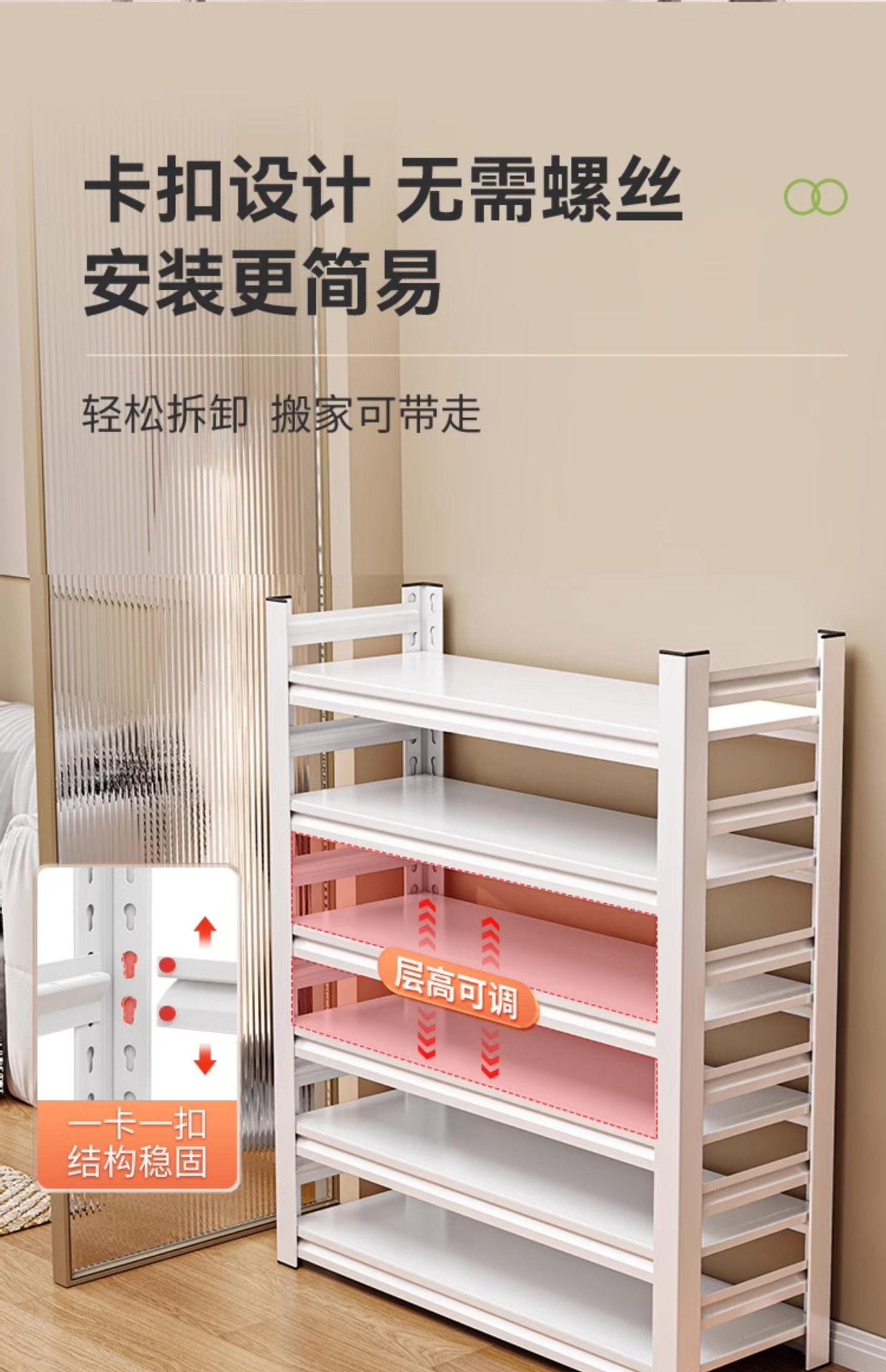钢制鞋架多层家用门口落地简易收纳架一体靠墙鞋柜入户门后置物架