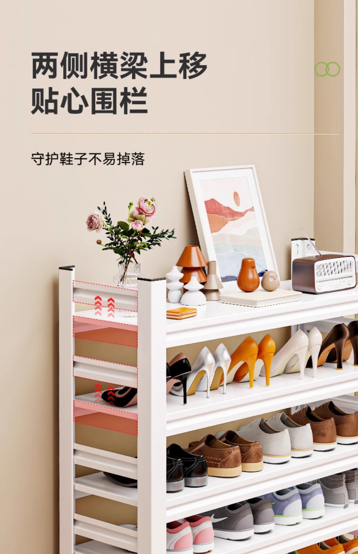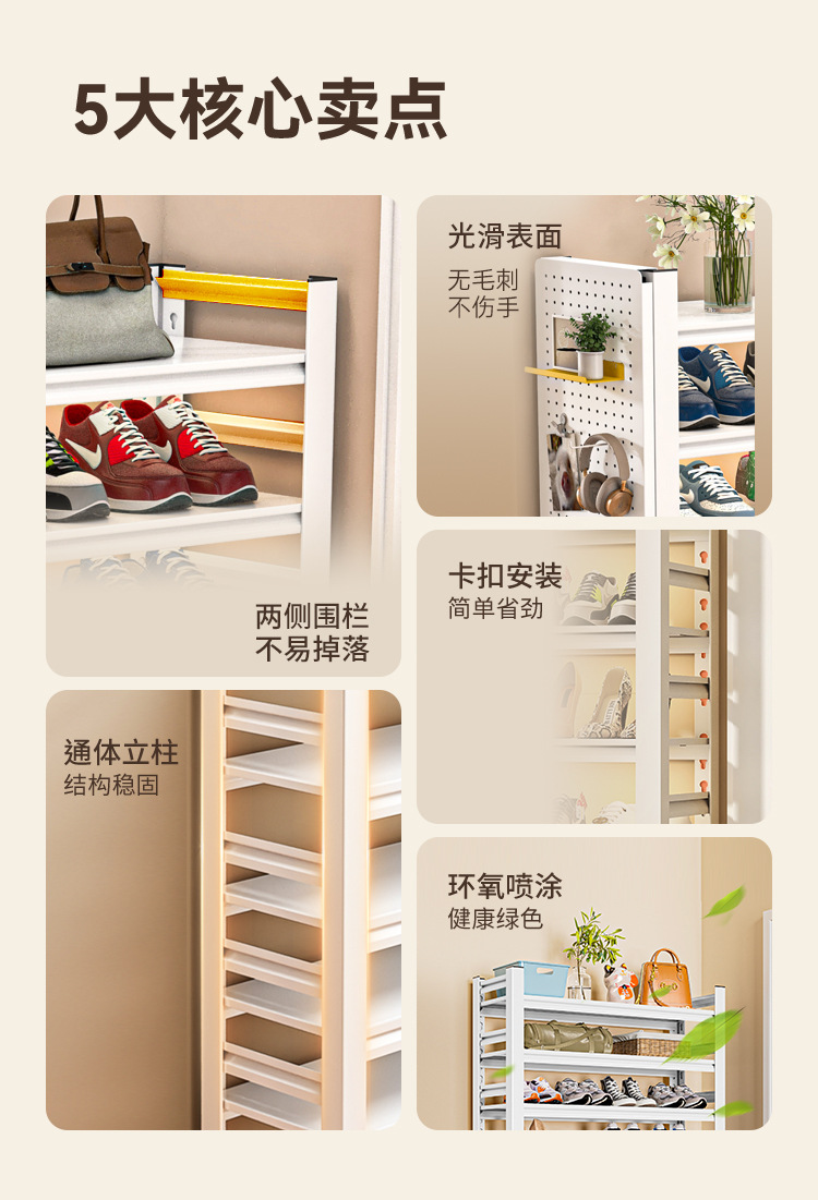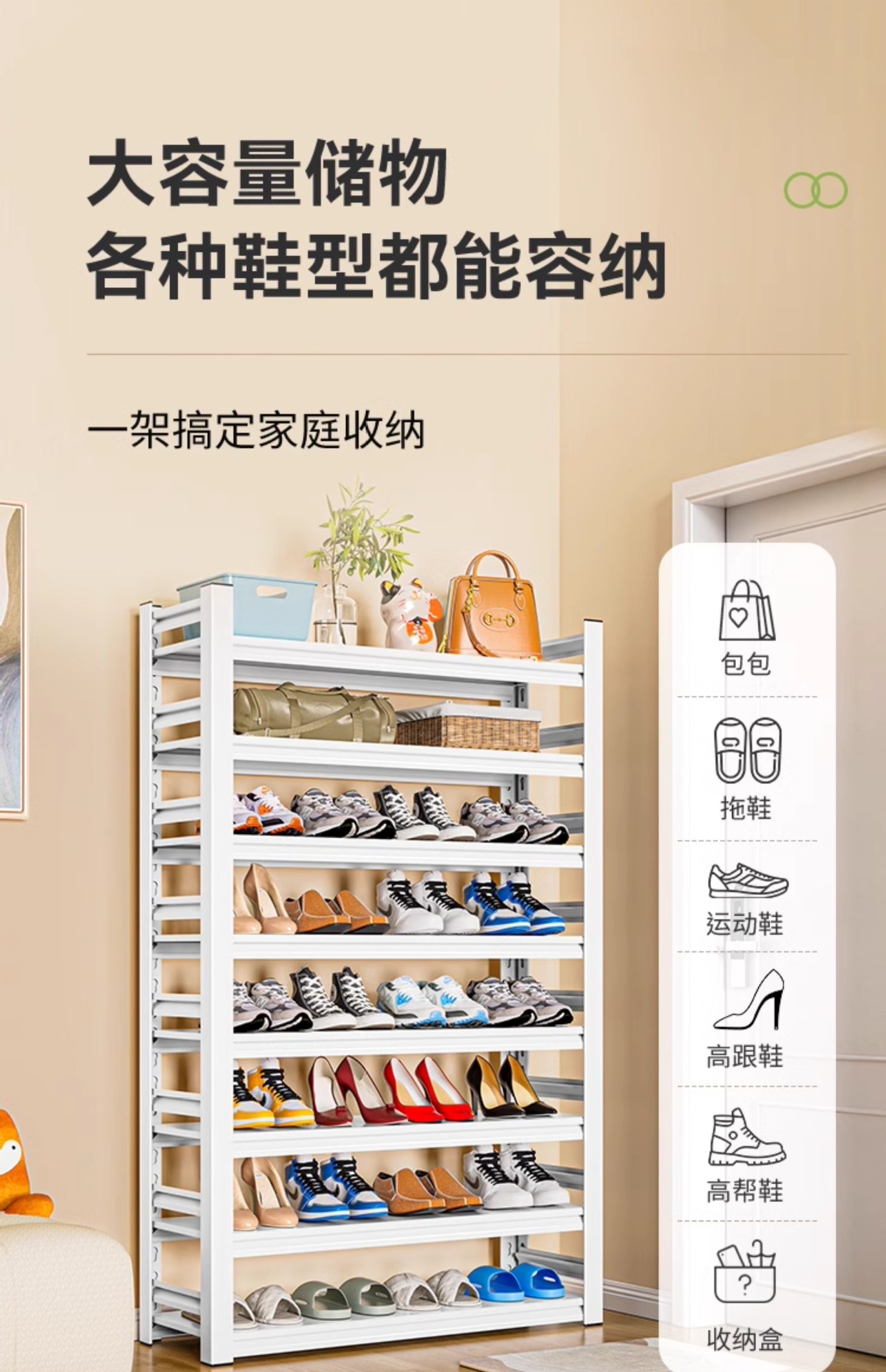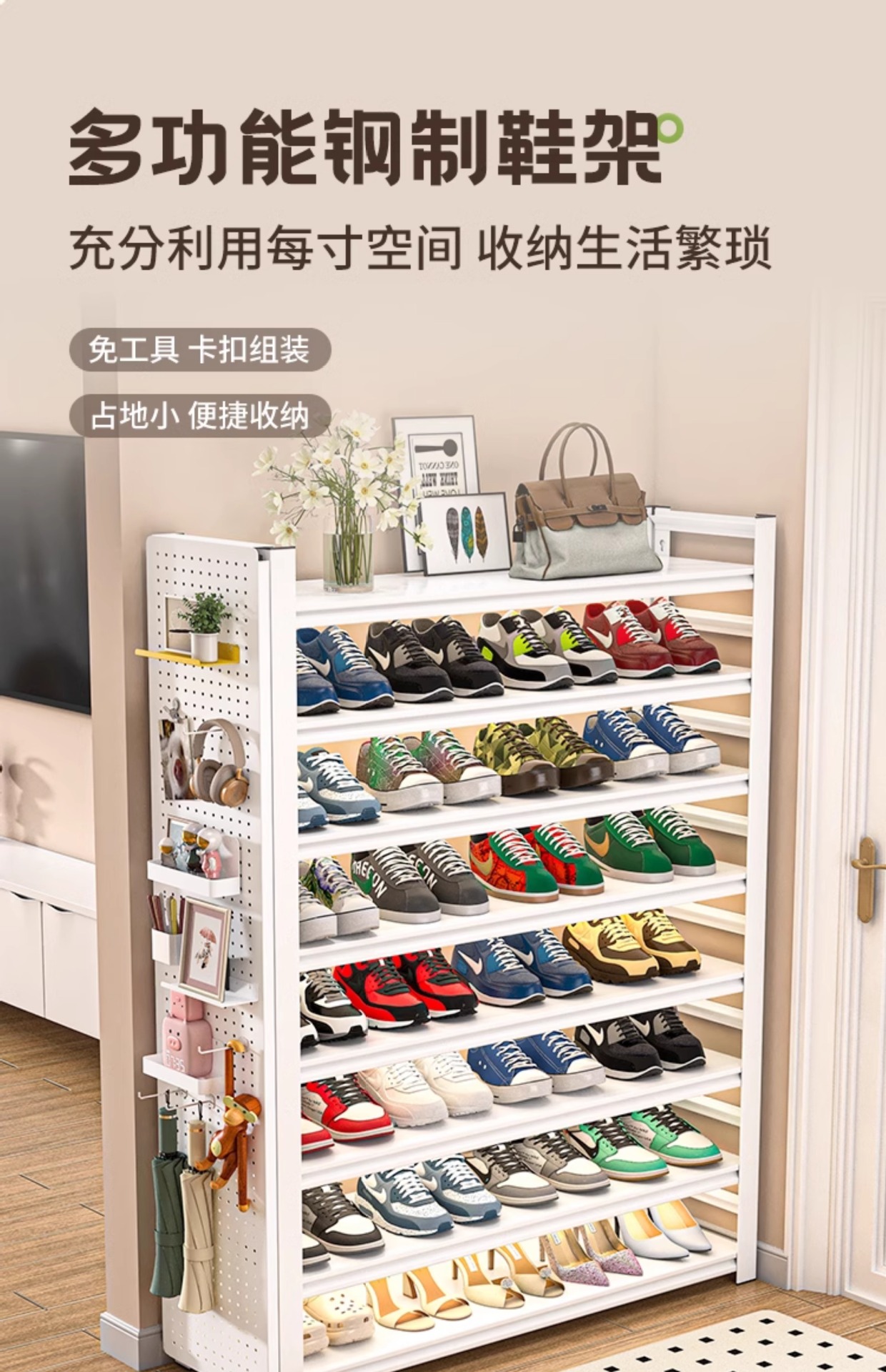 家用钢制鞋架入户门口多功能置物架家用架靠墙一体收纳架简易鞋柜