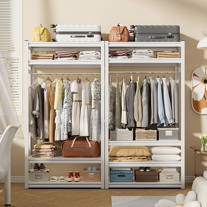 収納ラックワードローブハンガー防塵カーテンオープンクロークシンプルなアングルスチール家庭用床置き金属多層DIY