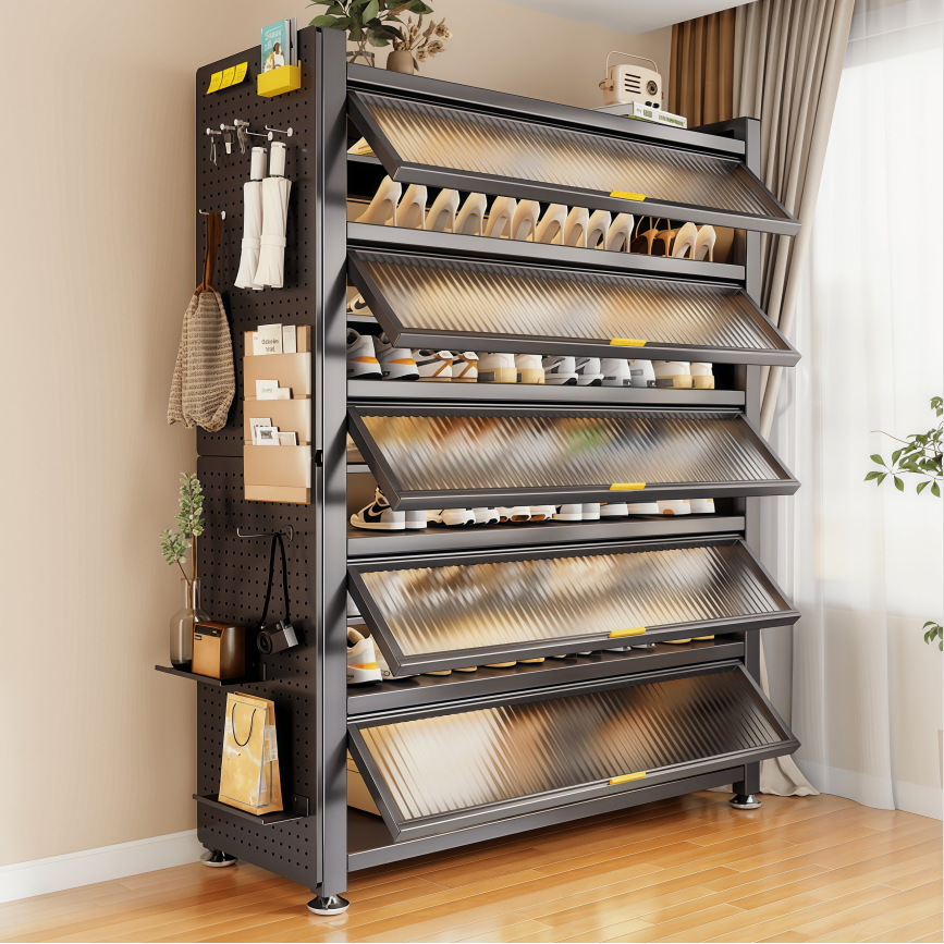 スチール製靴箱 家庭用賃貸住宅収納キャビネット 玄関収納キャビネット フリップトップ防塵キャビネット 大容量多層靴棚