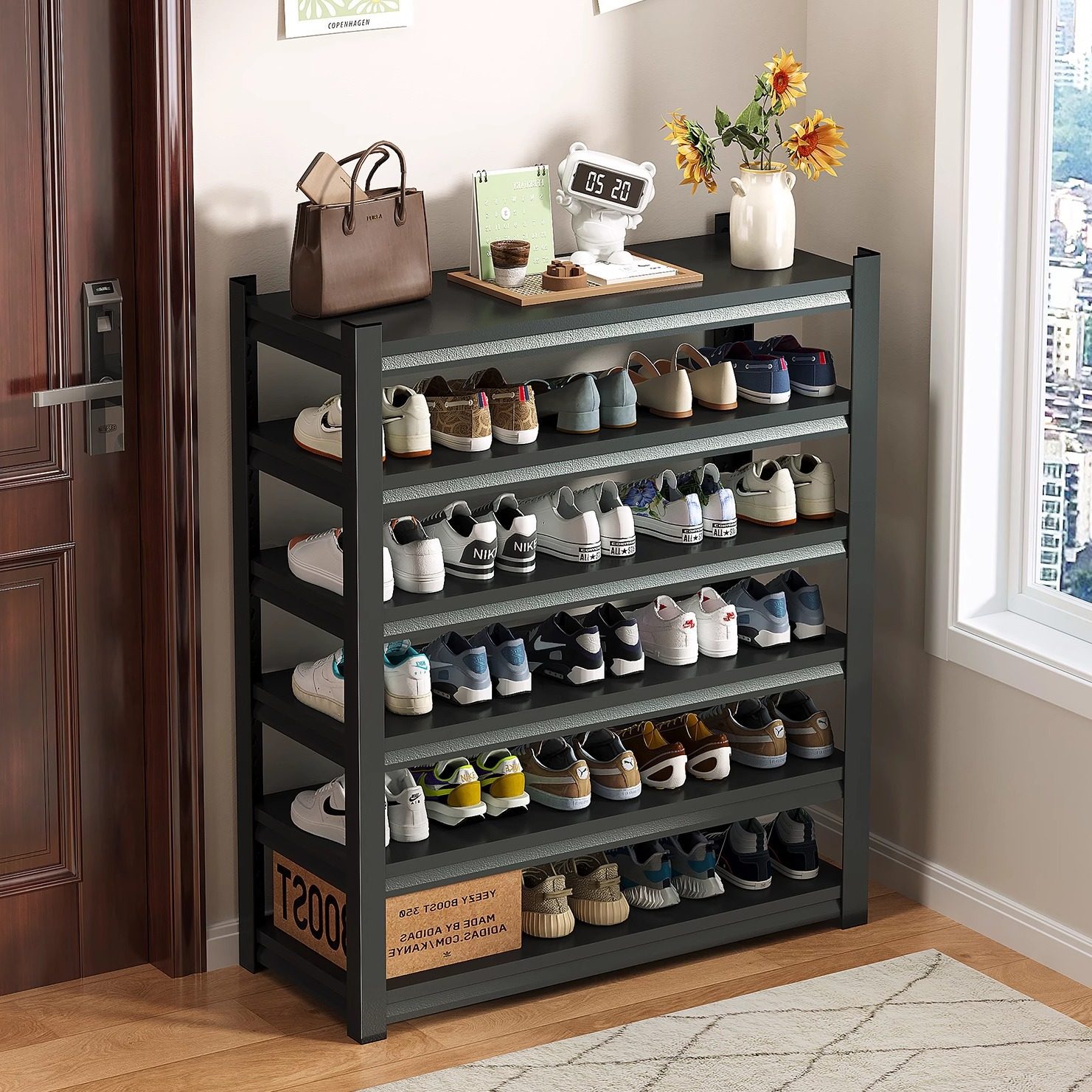 家庭用スチールシューズラック玄関床から天井までの多層収納ラックアイアンシンプルな収納ラック玄関ドア後靴キャビネット