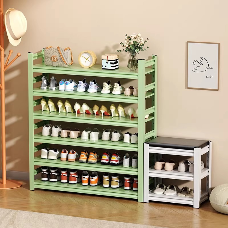 果绿色鞋架家用钢制多层置物架落地简易收纳架玄关大容量多彩鞋柜