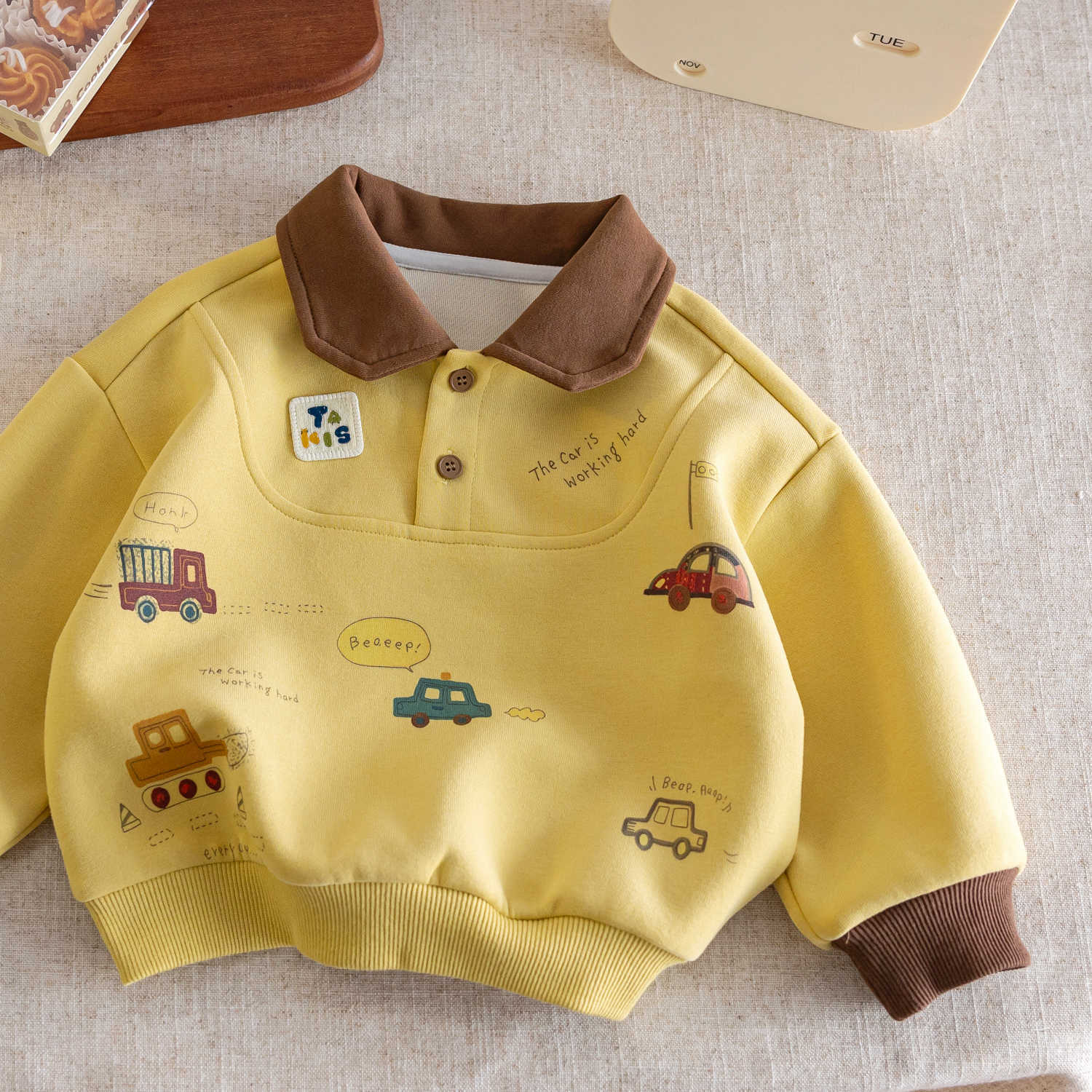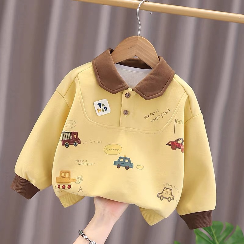 小布熊子供用スウェットシャツ2025年春秋新作車軌道柄配色男の子用ベースレイヤーシャツ春秋モデル