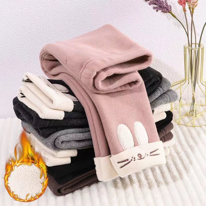 韓国子供服女の子冬ベルベット厚手パンツ 2025 子供の甘い蝶パイルソックス暖かいレギンス