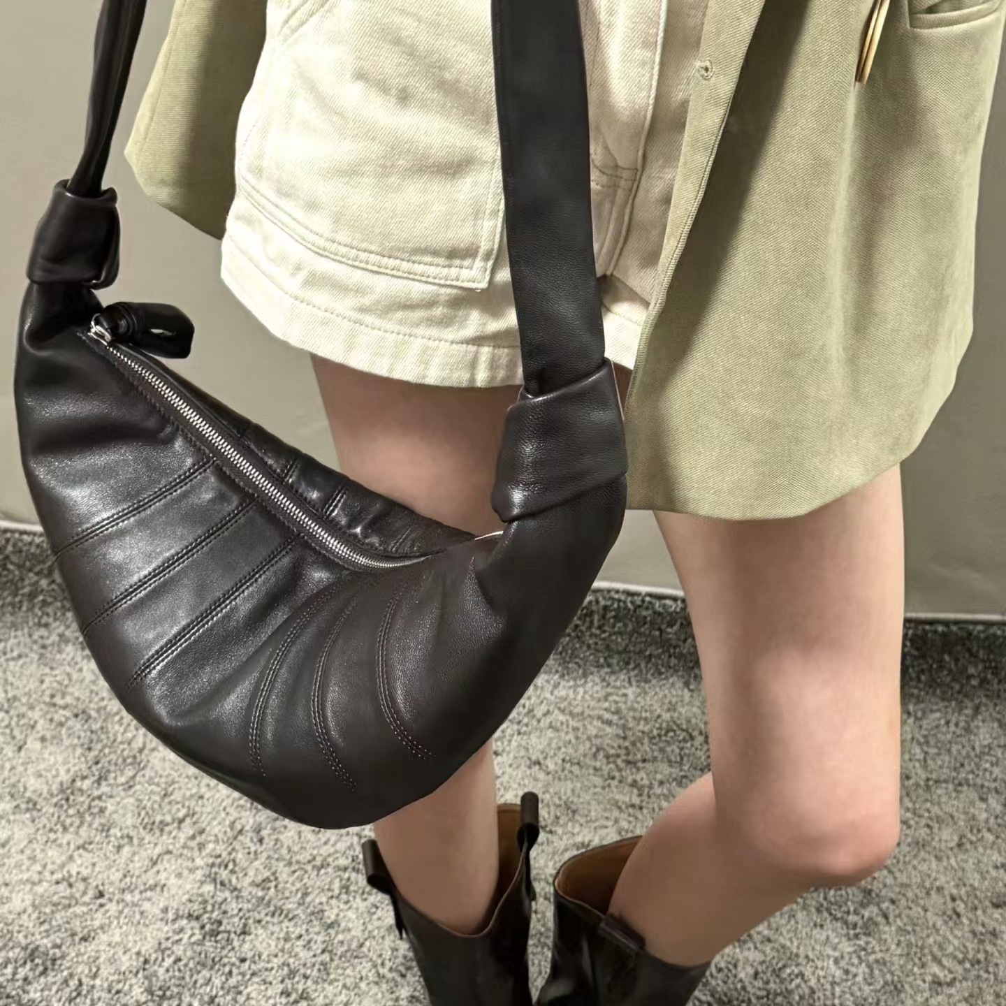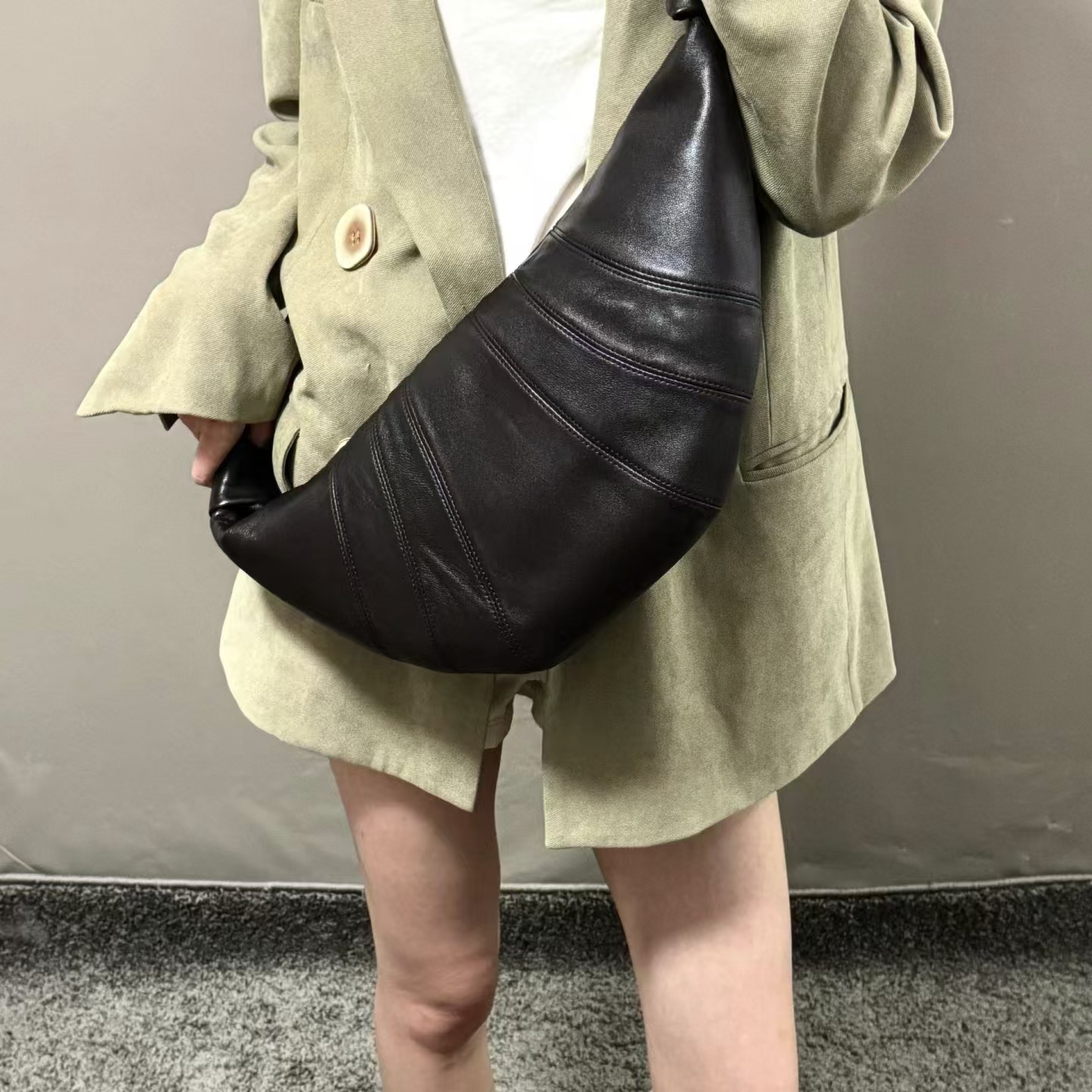 【本物の羊革正規版LEクロワッサンバッグ】新作本革質感クロスボディバッグ、ニュートラルでリラックスした雰囲気のクロワッサン