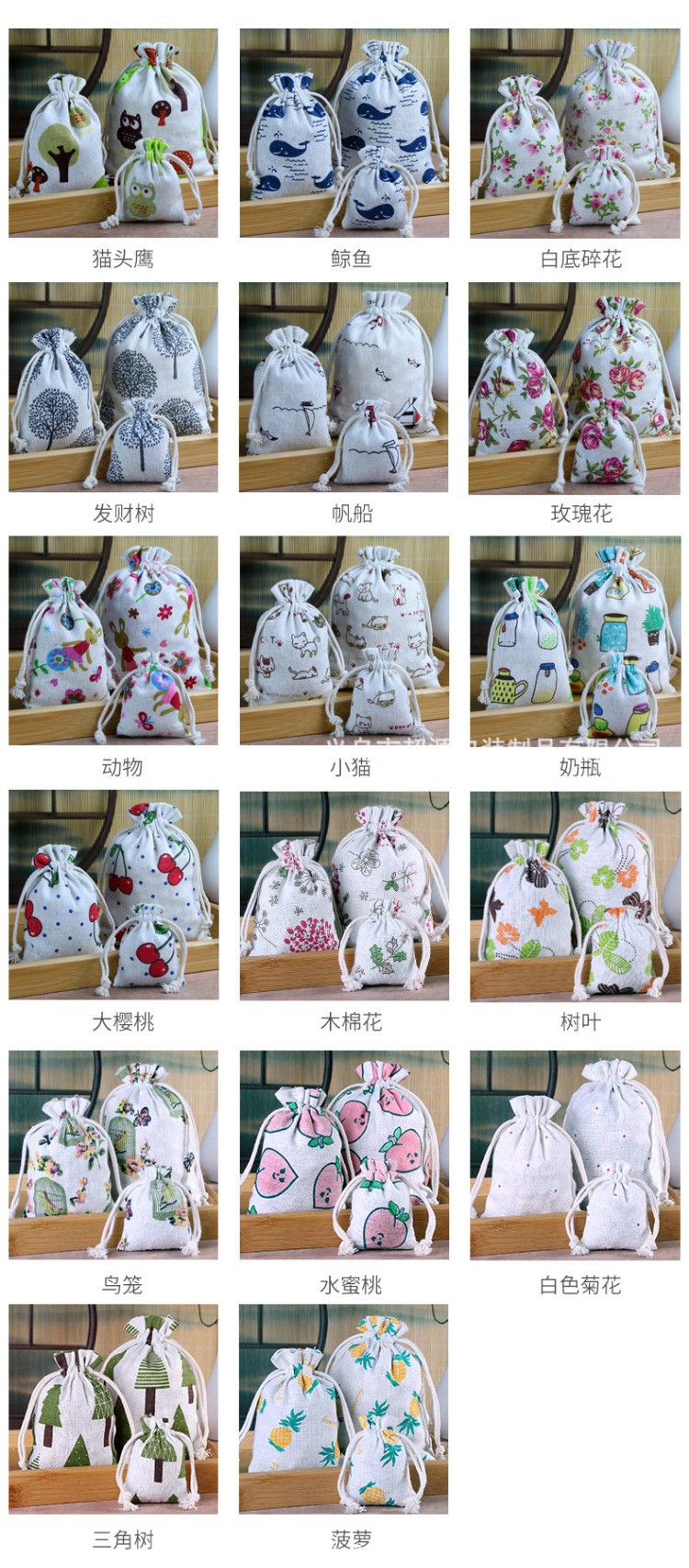 动物,奶瓶,菠萝,帆船,玫瑰花,发财树,西瓜,小猫,三角树,猫头鹰,树叶,鸟笼,大樱桃,白底碎花,鲸鱼,木棉花,民族风红色,民族风蓝色,深蓝白花