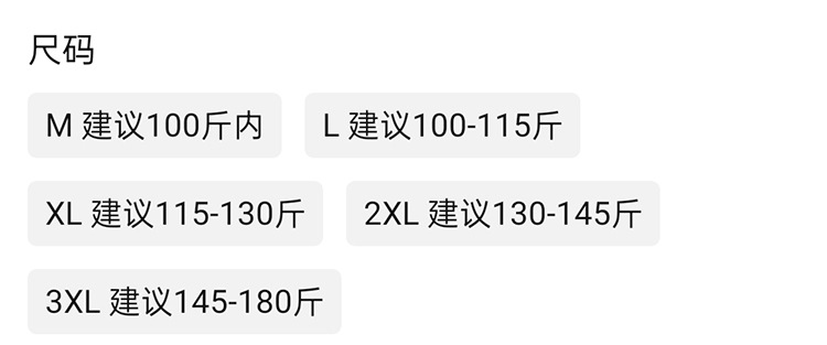 尺码 M,L,XL,2XL,3XL