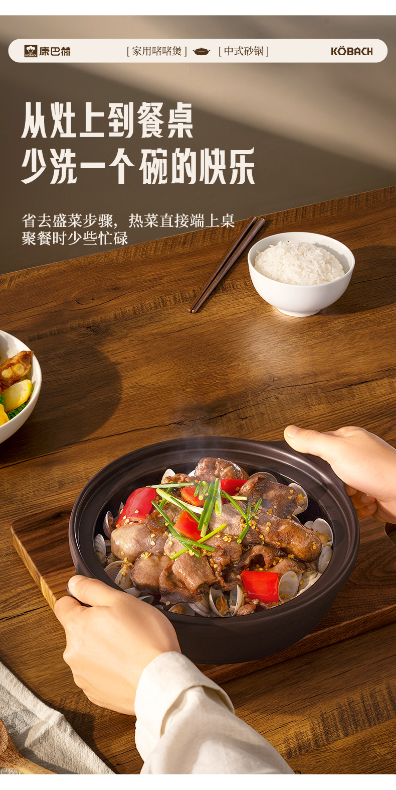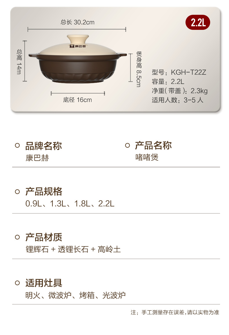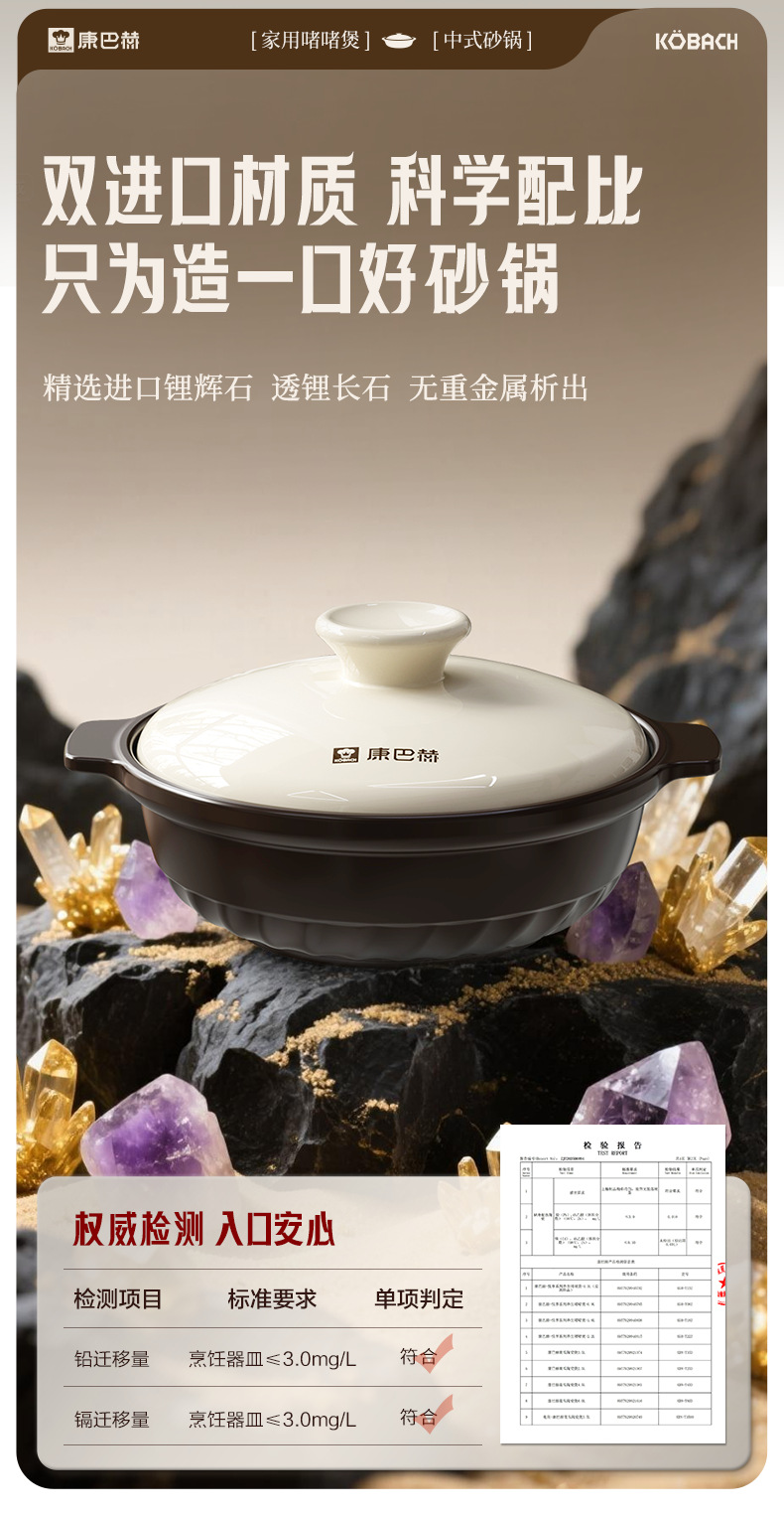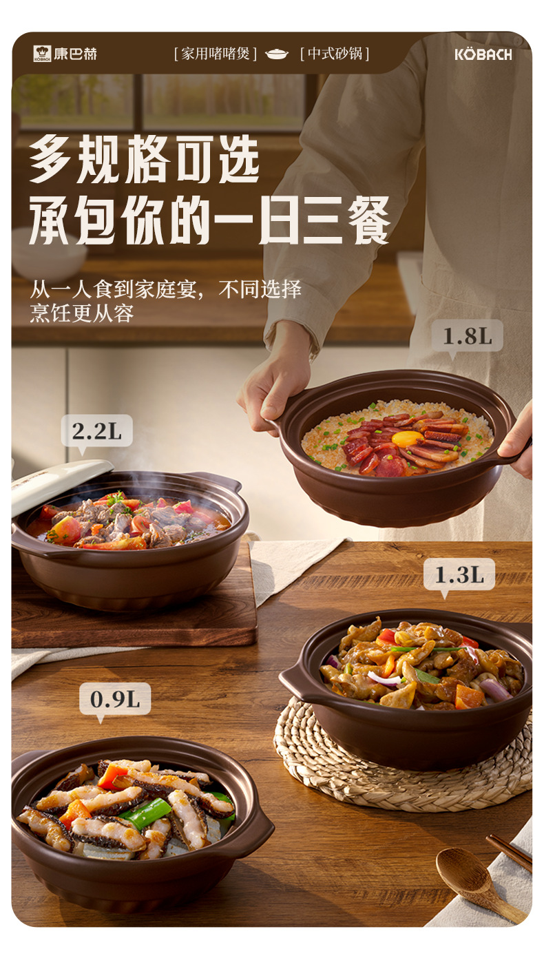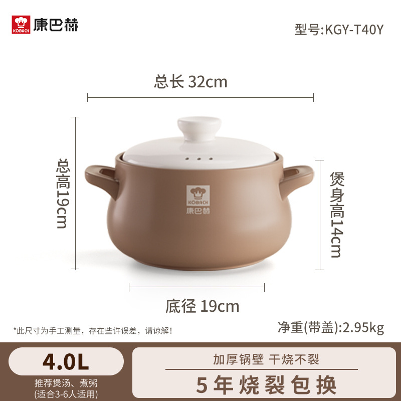 康巴赫砂锅家用燃气炖锅陶瓷煲仔饭炖汤锅耐高温干烧不裂沙锅汤锅
