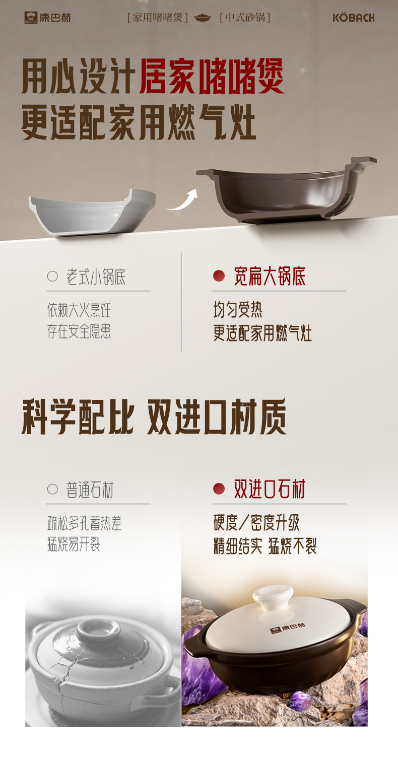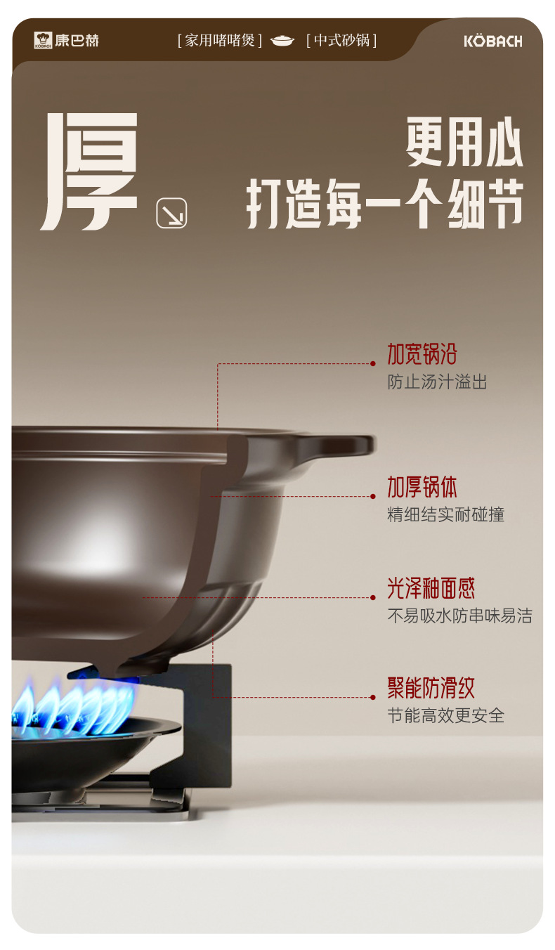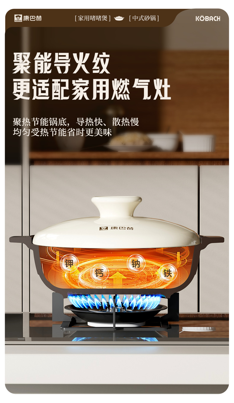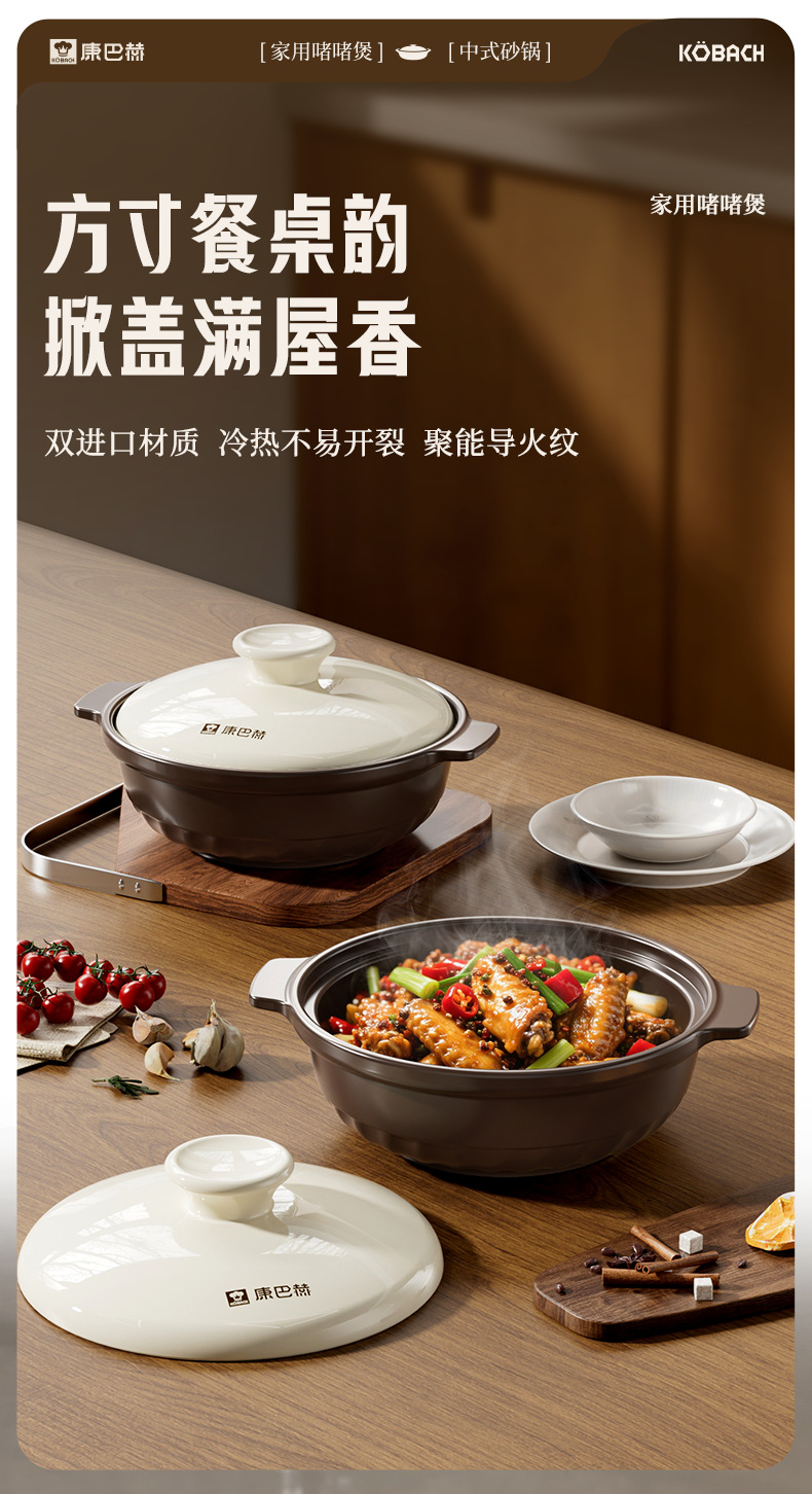 康巴赫炒菜砂锅煲家用燃气专用煲仔饭耐高温干烧不裂浅口陶瓷锅
