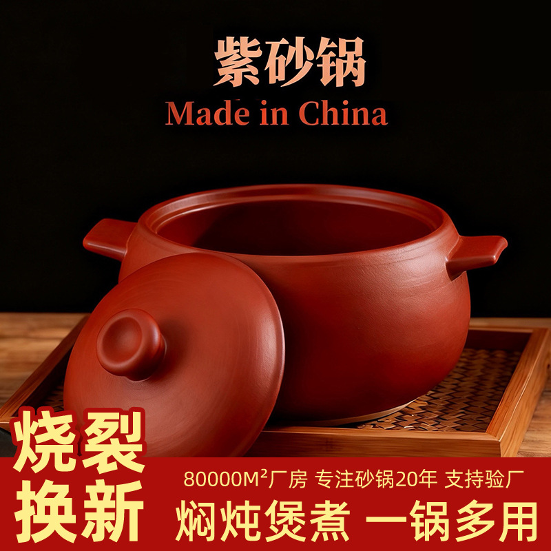 紫砂锅家用燃气灶专用砂锅耐高温干烧不裂无釉煲汤锅老式土陶砂锅