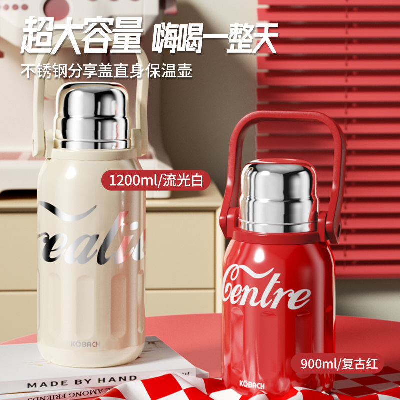 康巴赫保温杯316L吸管杯大容量咖啡杯双口便携水杯女生高颜值杯子
