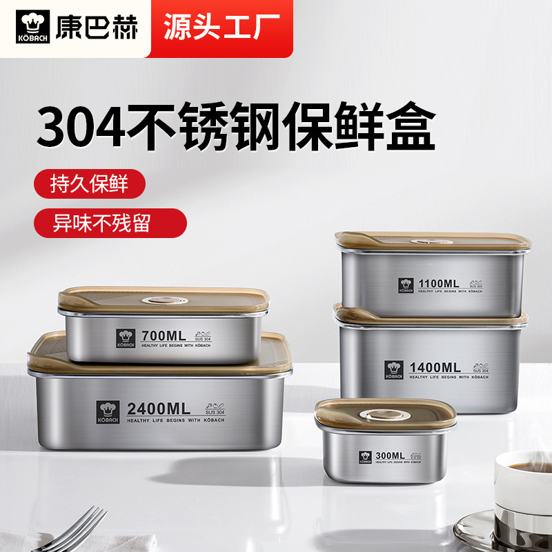 康バッハステンレス鮮度保持箱密封箱果物弁当箱食品級304冷蔵庫専用蓋付き弁当箱